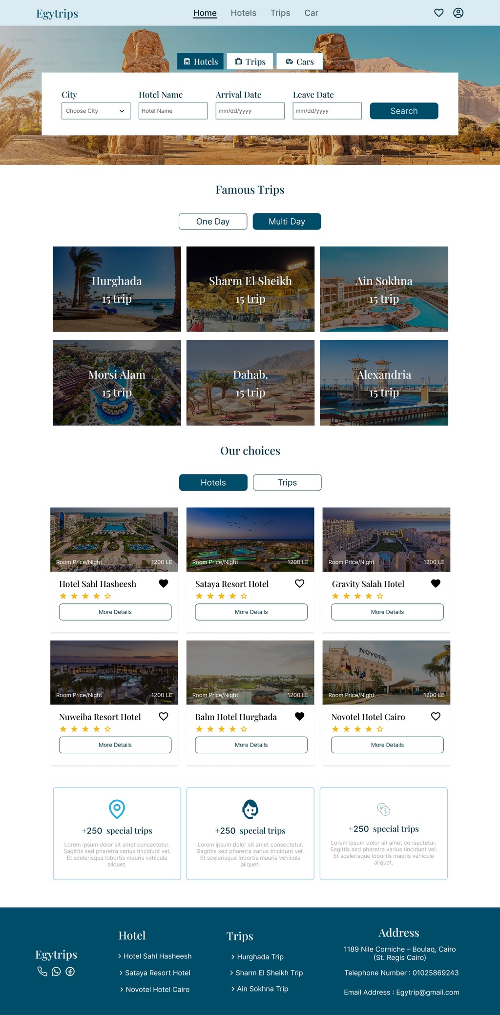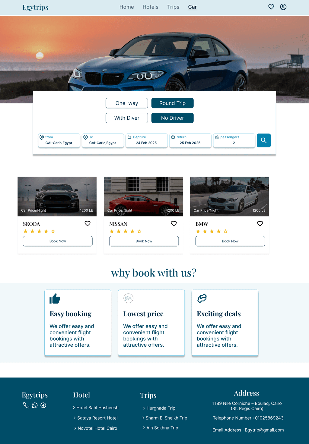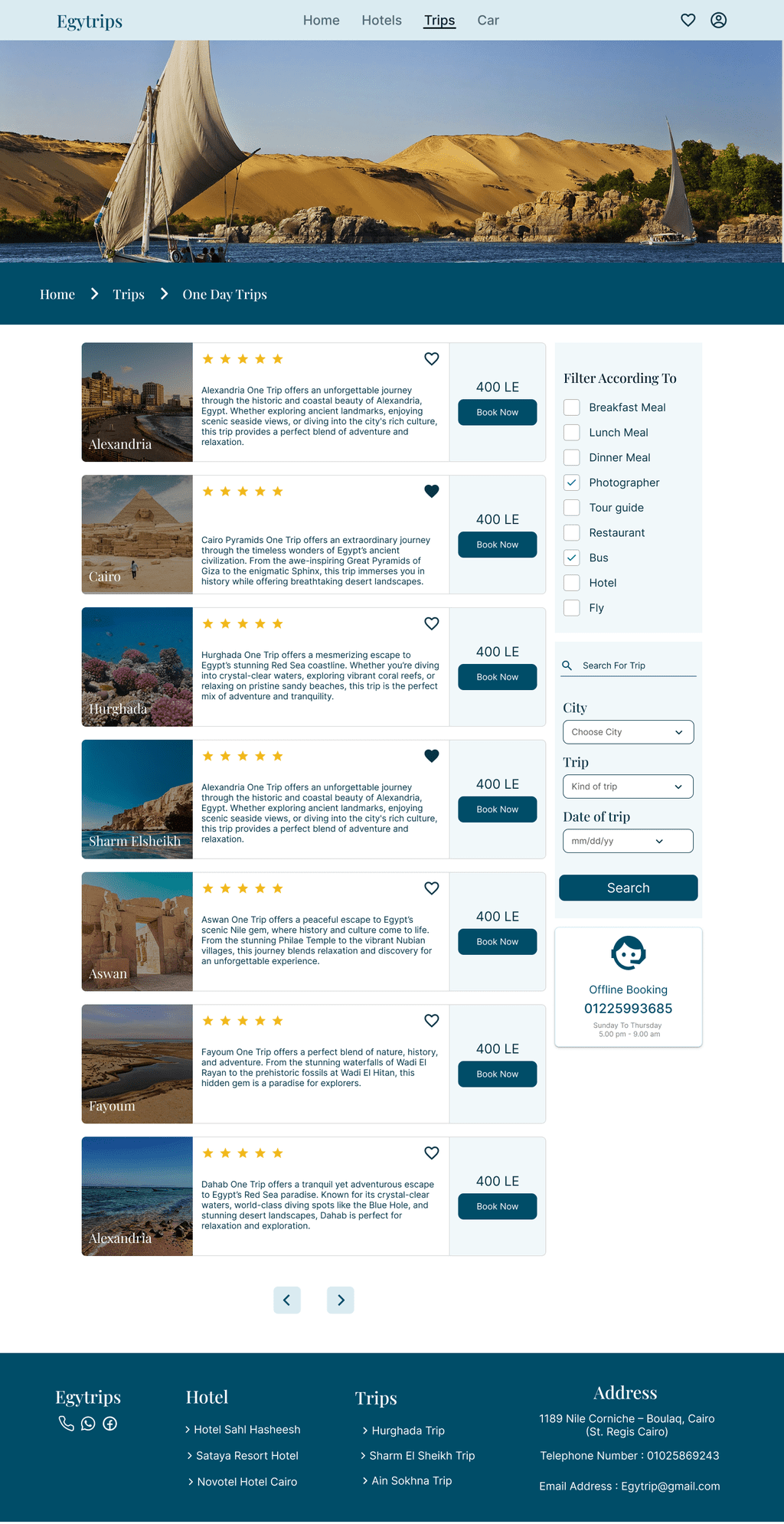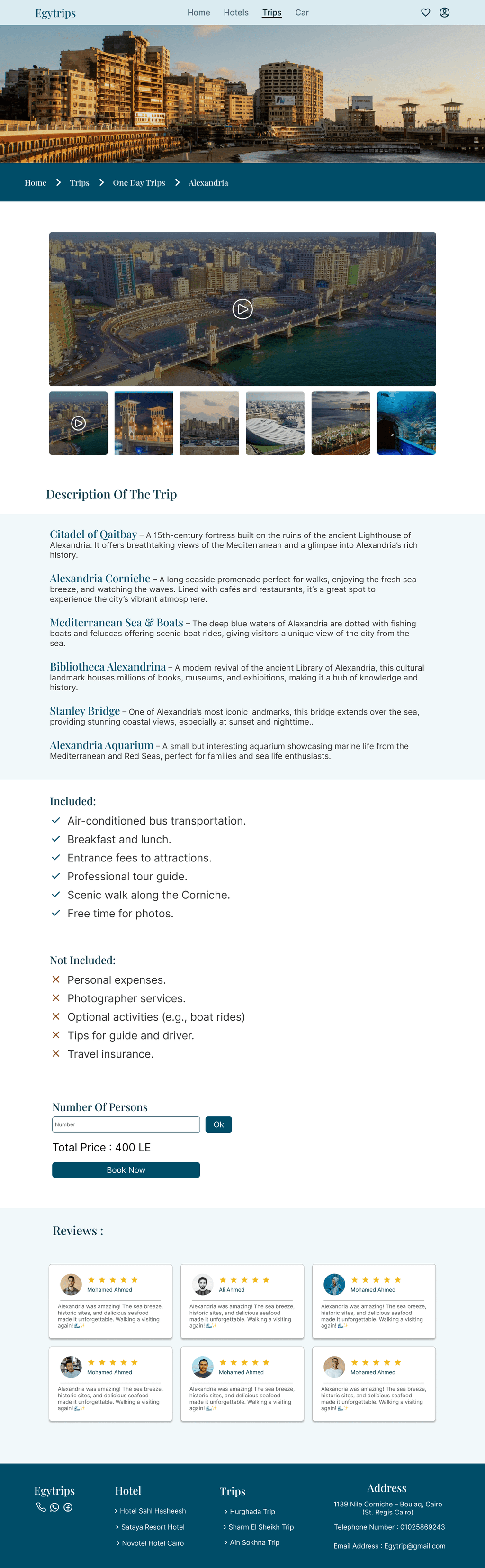 "رحلات مصر" هو موقع إلكتروني سياحي داخلي مخصص لحجز الرحلات السياحية داخل مصر، ويُوفر تجربة متكاملة للمستخدم من خلال واجهة سهلة الاستخدام ومتجاوبة مع جميع أحجام الشاشات، خاصة أجهزة الموبايل.