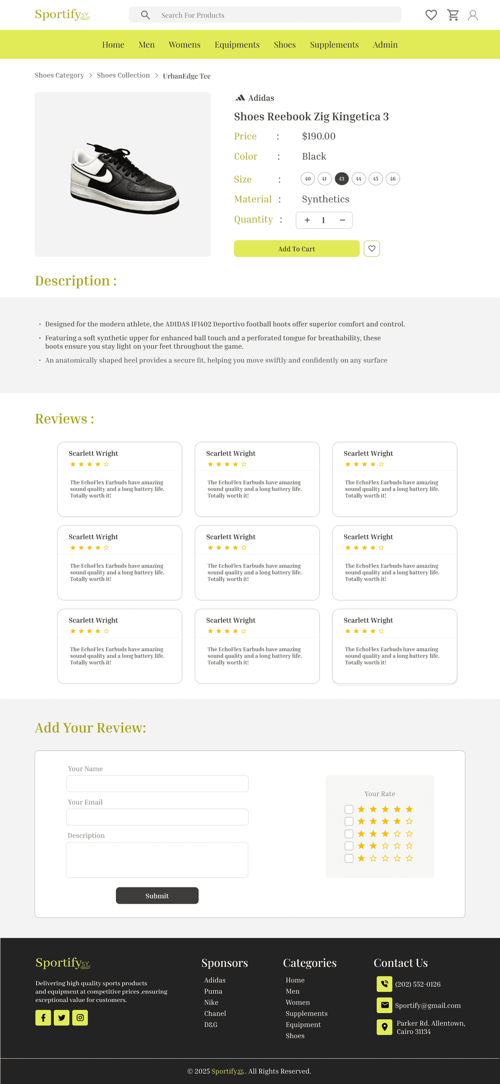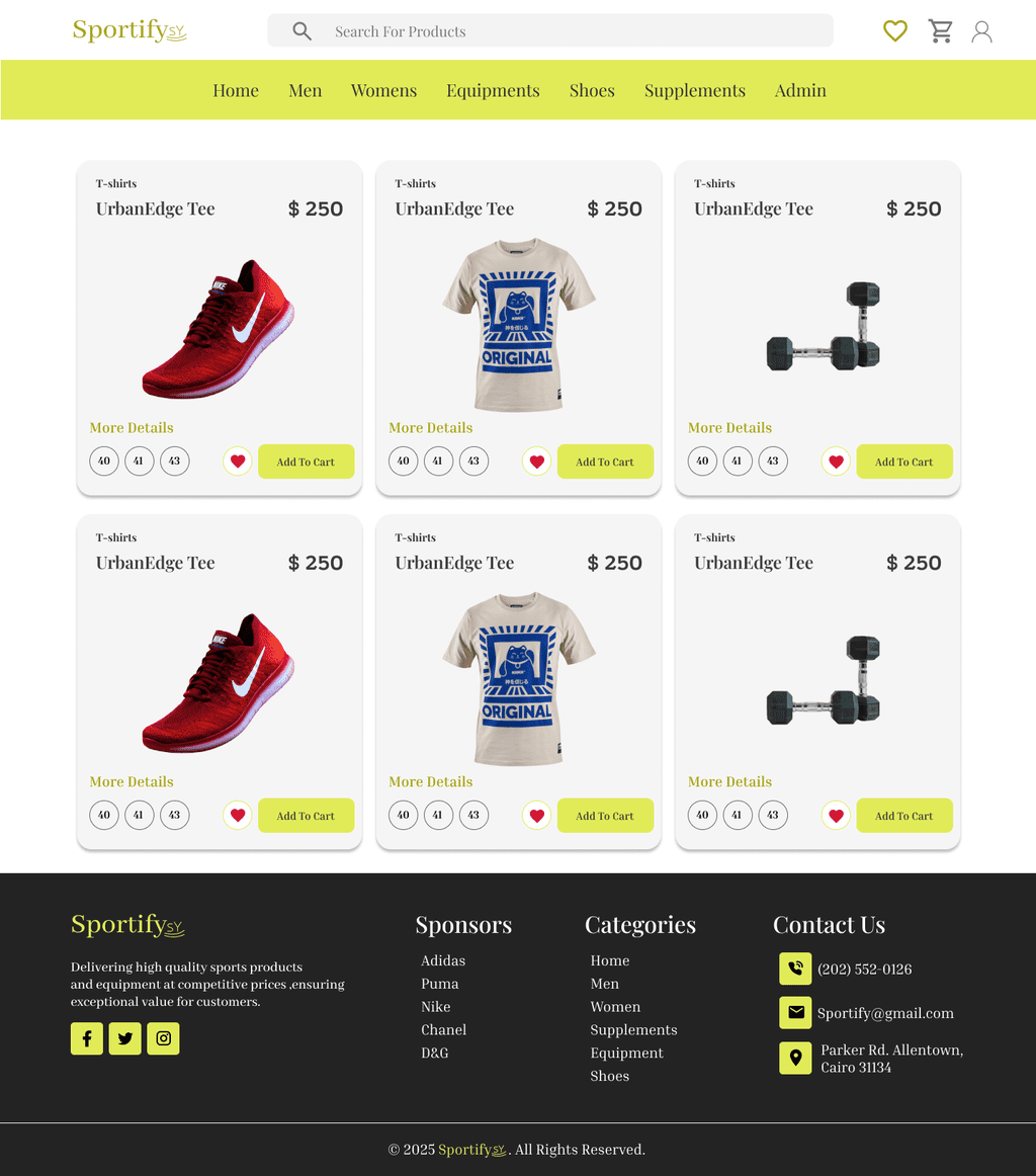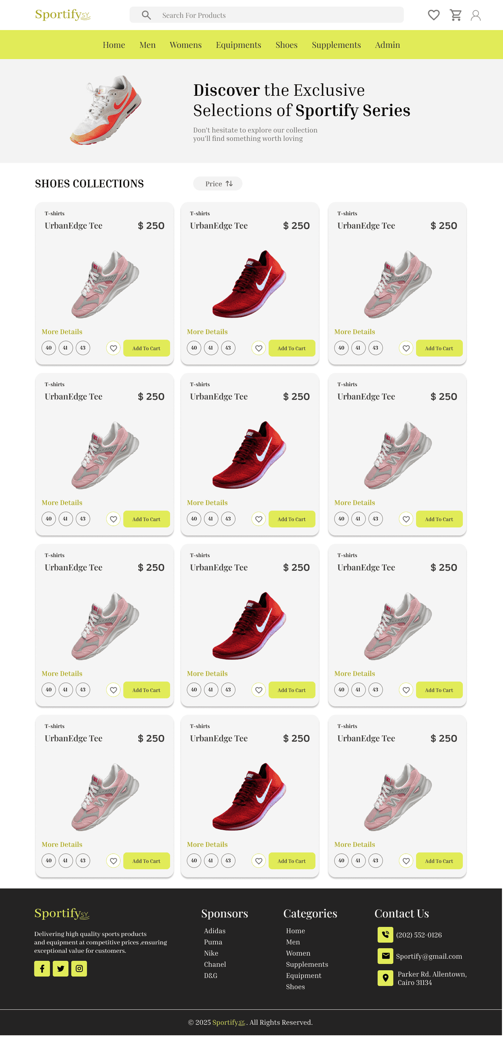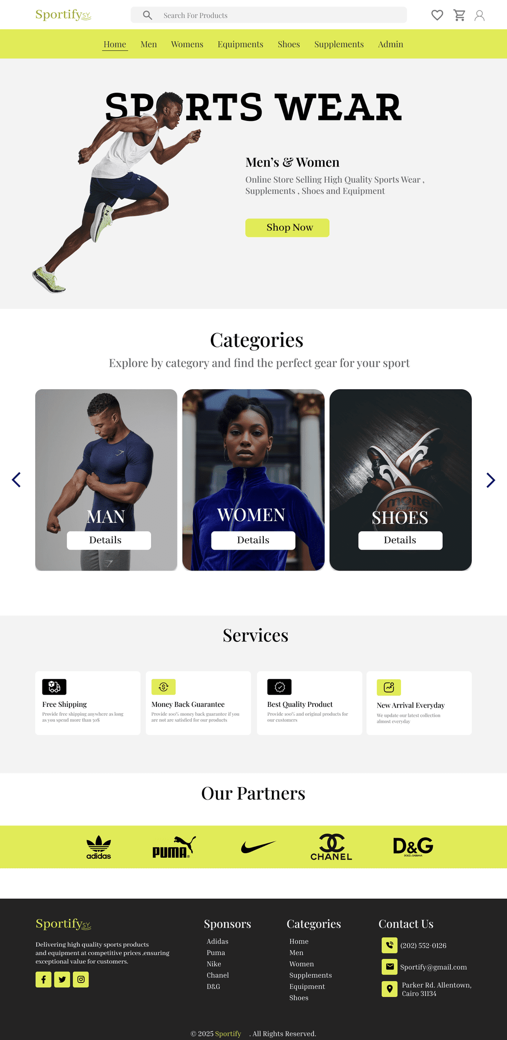 تم تصميم هذا المتجر الإلكتروني ليكون تجربة تسوق متكاملة لعشاق الرياضة، حيث يوفر واجهة مستخدم حديثة وسهلة الاستخدام تضمن تجربة تصفح سلسة وسريعة. يحتوي الموقع على عدة أقسام رئيسية تشمل: