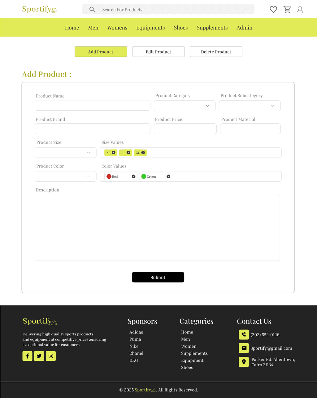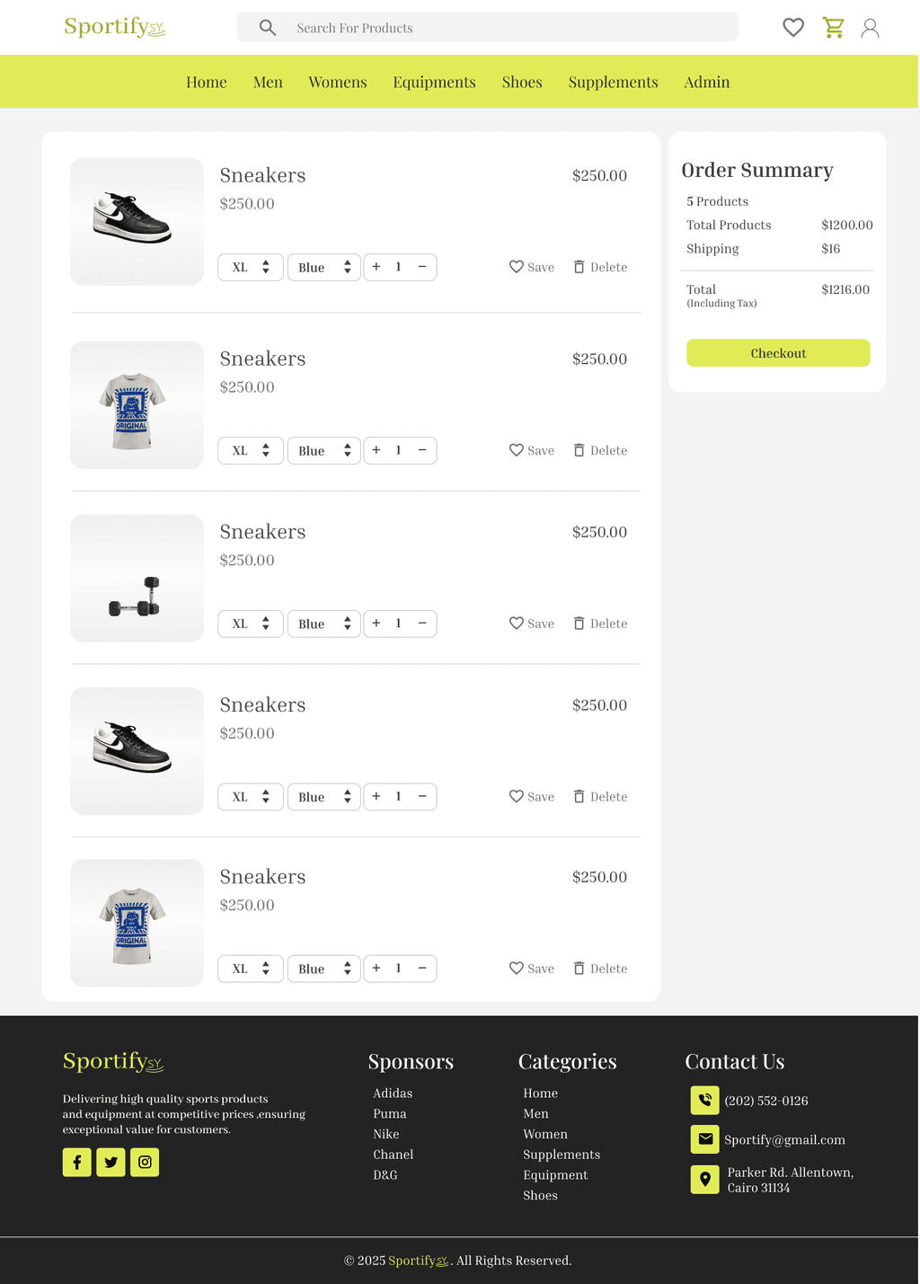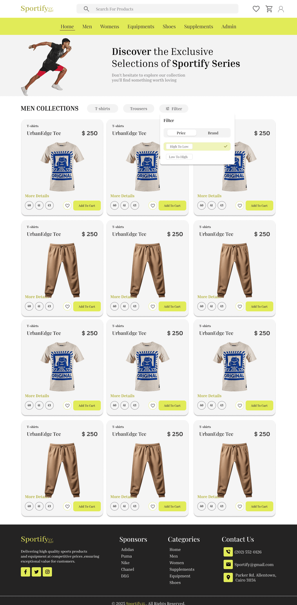 تم تصميم هذا المتجر الإلكتروني ليكون تجربة تسوق متكاملة لعشاق الرياضة، حيث يوفر واجهة مستخدم حديثة وسهلة الاستخدام تضمن تجربة تصفح سلسة وسريعة. يحتوي الموقع على عدة أقسام رئيسية تشمل: