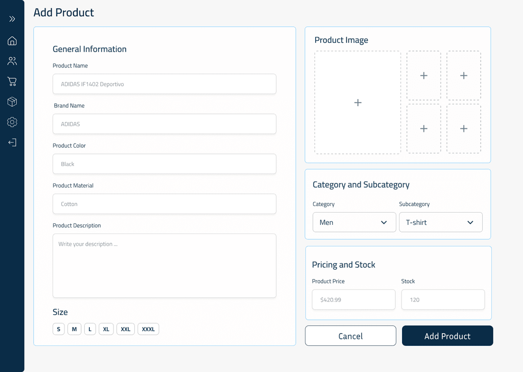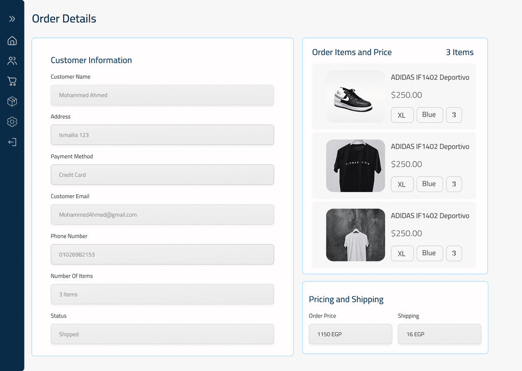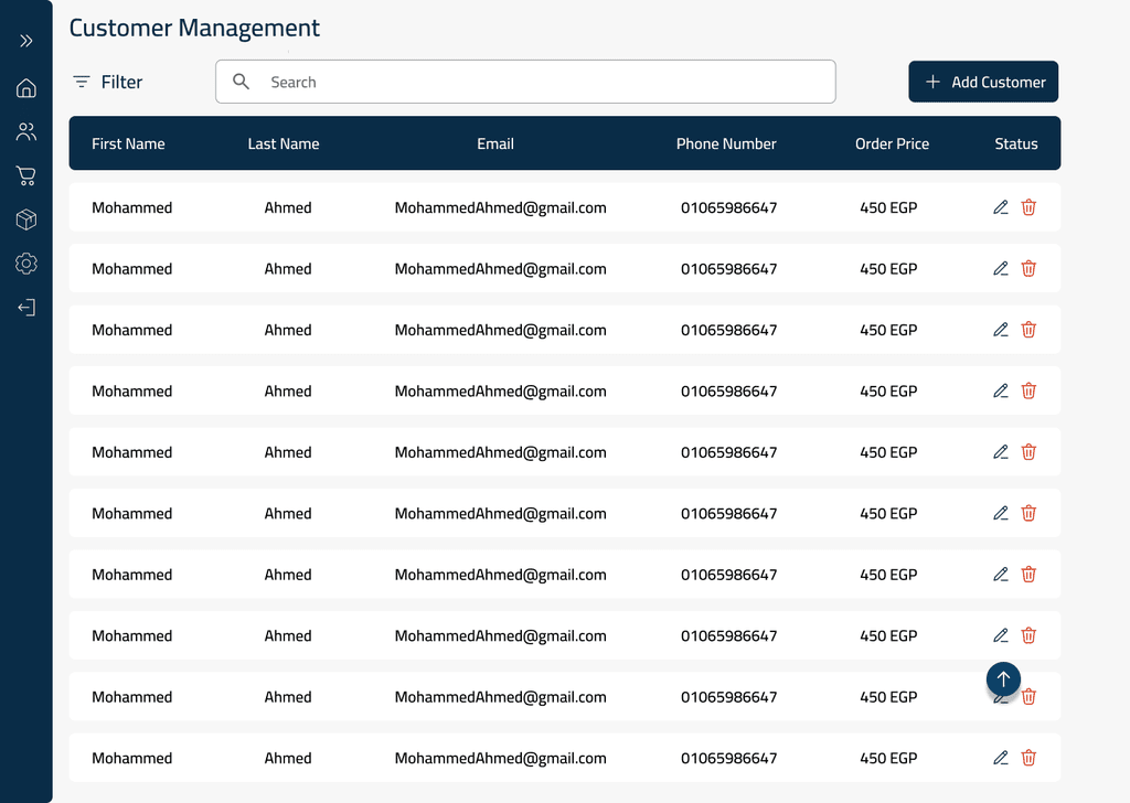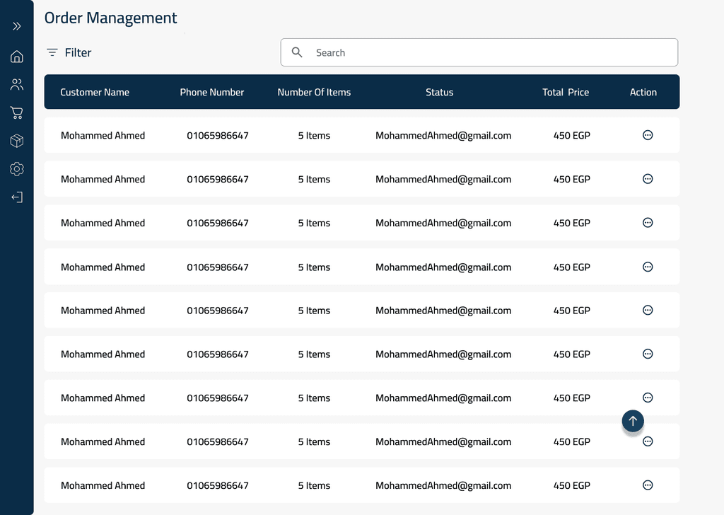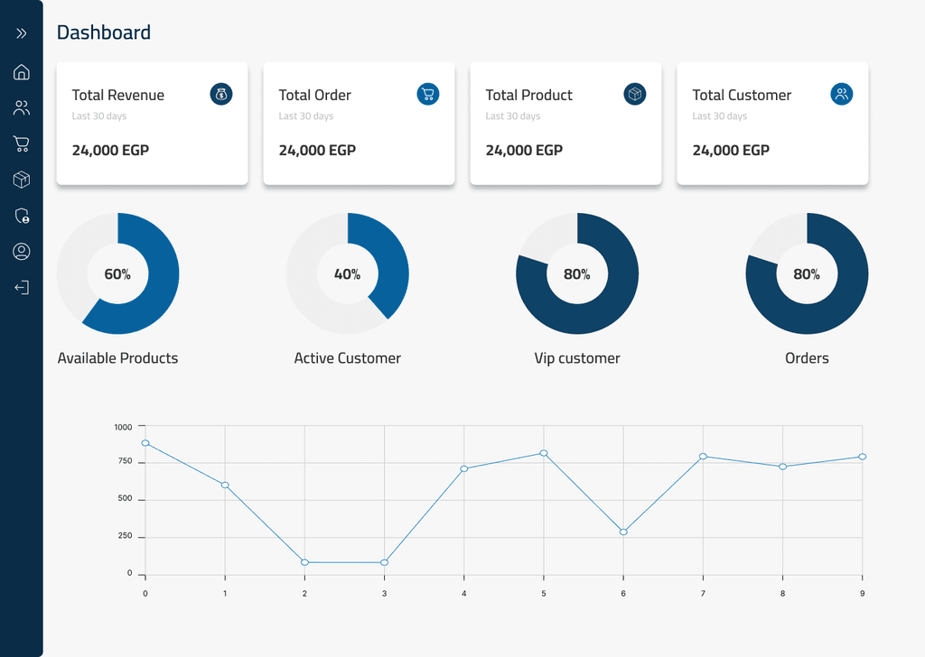 قمت بتصميم واجهة مستخدم (UI) احترافية للوحة تحكم خاصة بمتجر إلكتروني باستخدام أداة Figma، مع التركيز على تجربة المستخدم (UX) وسهولة الإدارة والتنقل داخل النظام.