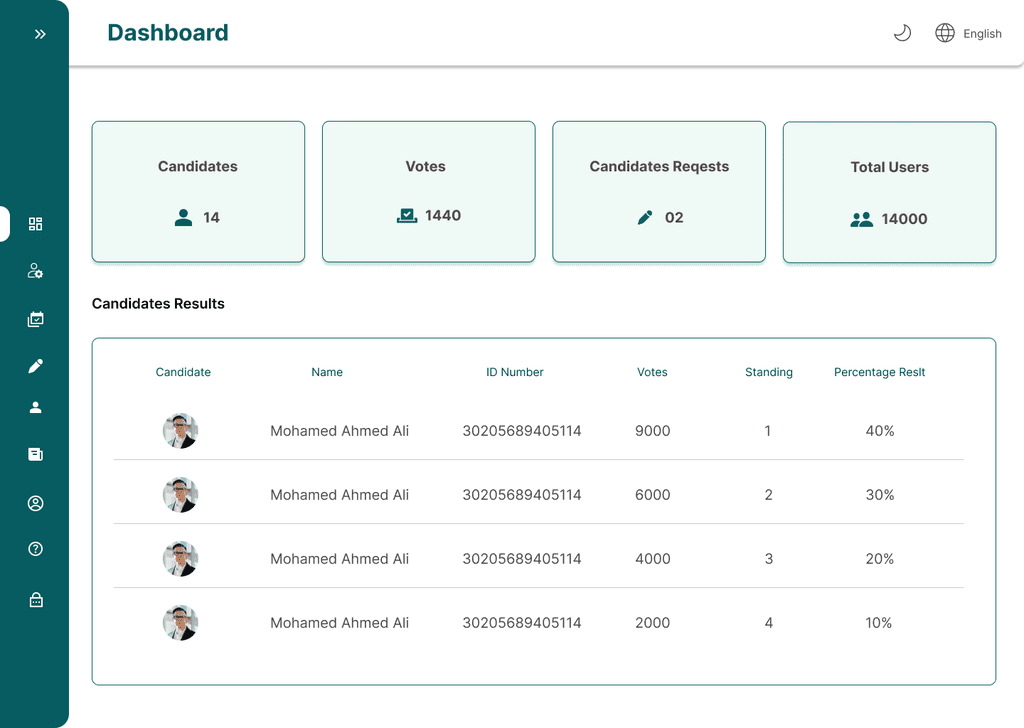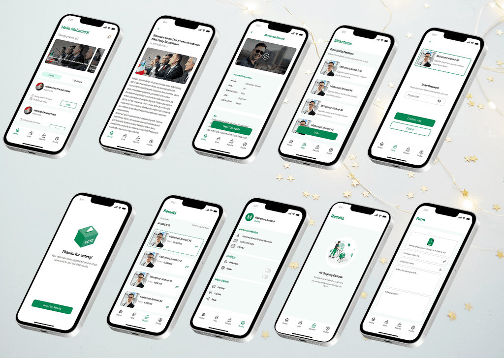 تطبيق انتخابات إلكترونية يقدم تجربة شاملة للمستخدمين مع واجهة مستخدم سلسة ومبتكرة. يشمل التطبيق قسمًا خاصًا للأخبار المتعلقة بالانتخابات، بالإضافة إلى عرض النتائج المباشرة خلال فترة الانتخابات. يتيح التطبيق للمستخدمين إنشاء ملف شخصي وتسجيل الدخول للوصول إلى جميع الميزات، بما في ذلك رؤية ملفات المرشحين بشكل مفصل والتعرف على برامجهم الانتخابية. كما يوفر التطبيق خاصية التصويت المباشر، مما يسهل على المستخدمين المشاركة في الانتخابات بشكل آمن وسريع. يهدف التطبيق إلى توفير تجربة تفاعلية وسهلة لجميع المستخدمين، مع ضمان أمان وشفافية العملية الانتخابية.