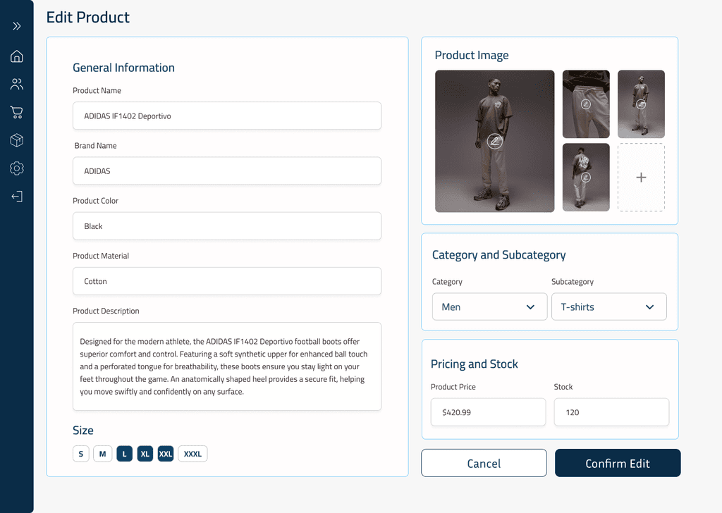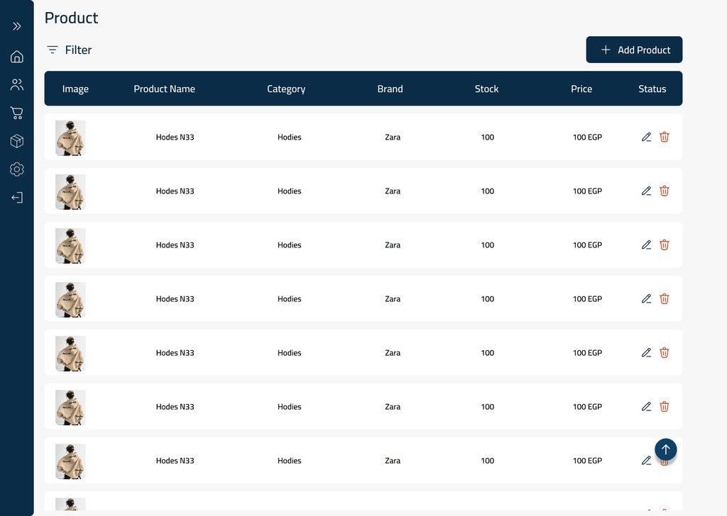 تصميم صفحة منظمة تسمح بعرض قائمة المنتجات مع إمكانية إضافة منتج جديد، تعديل بياناته أو حذفه.