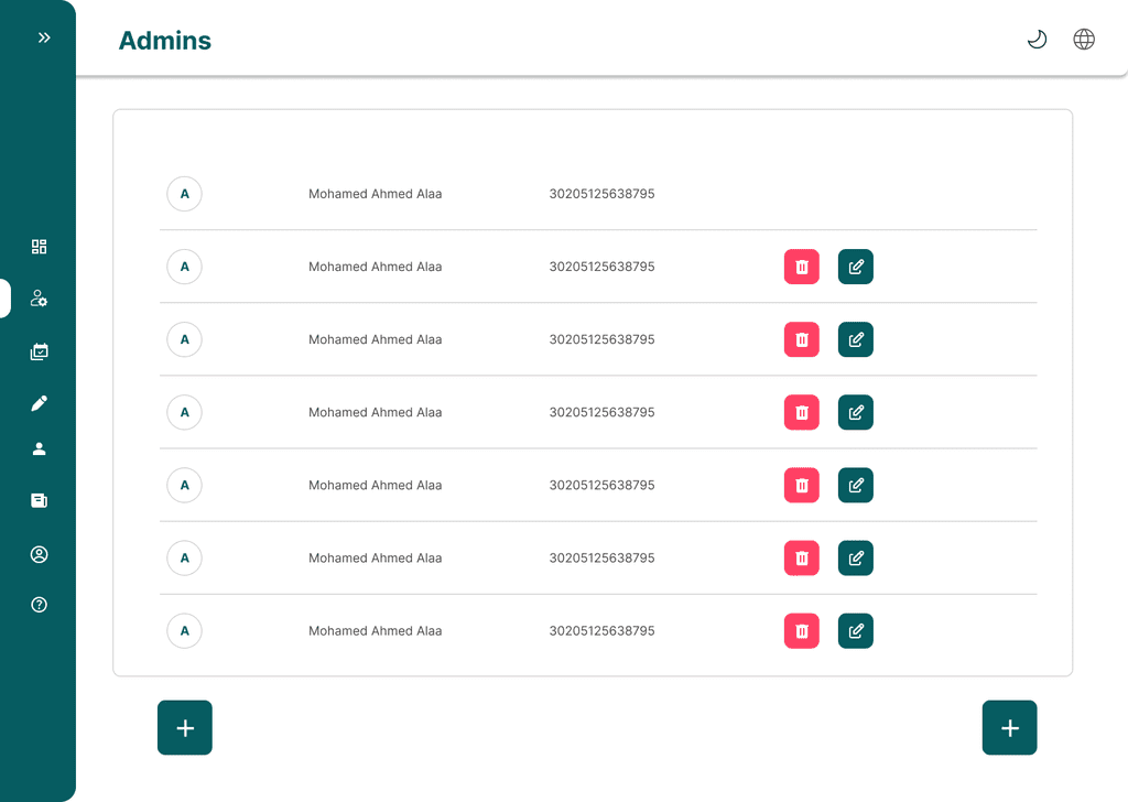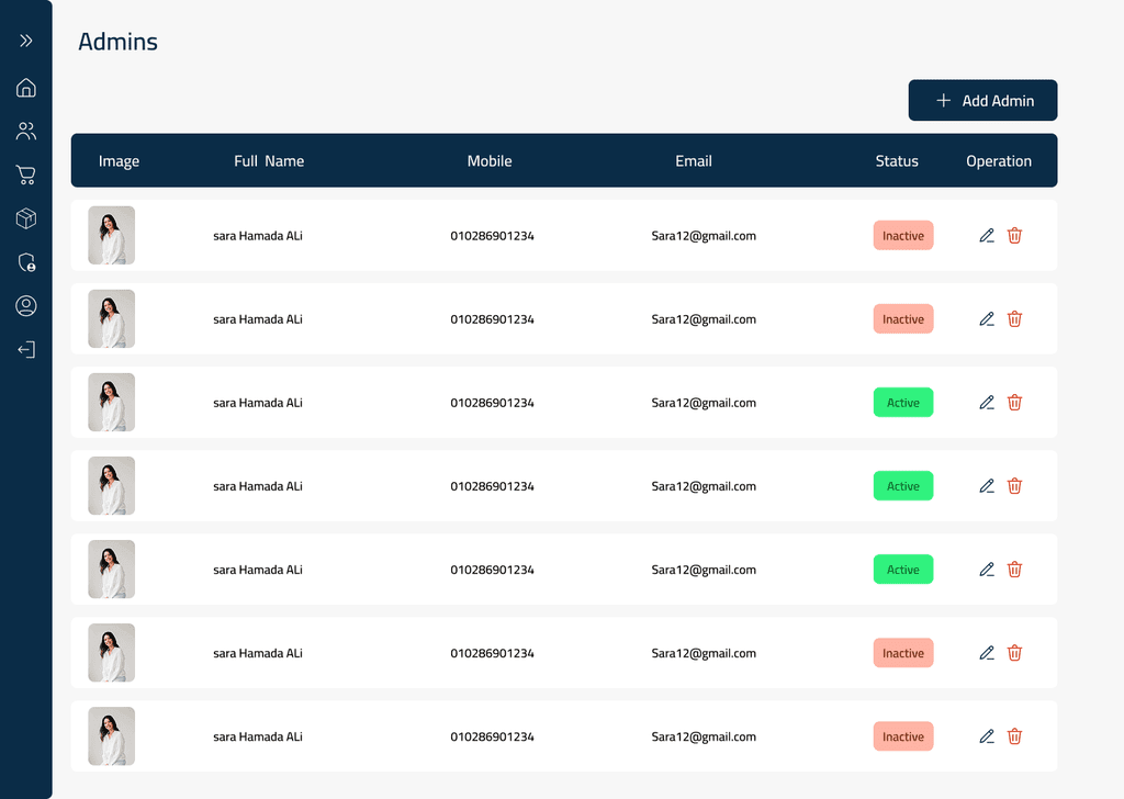 إمكانية إدارة المسؤولين (Admins) مع واجهة لإضافة أدمن جديد وتحديد صلاحياته.