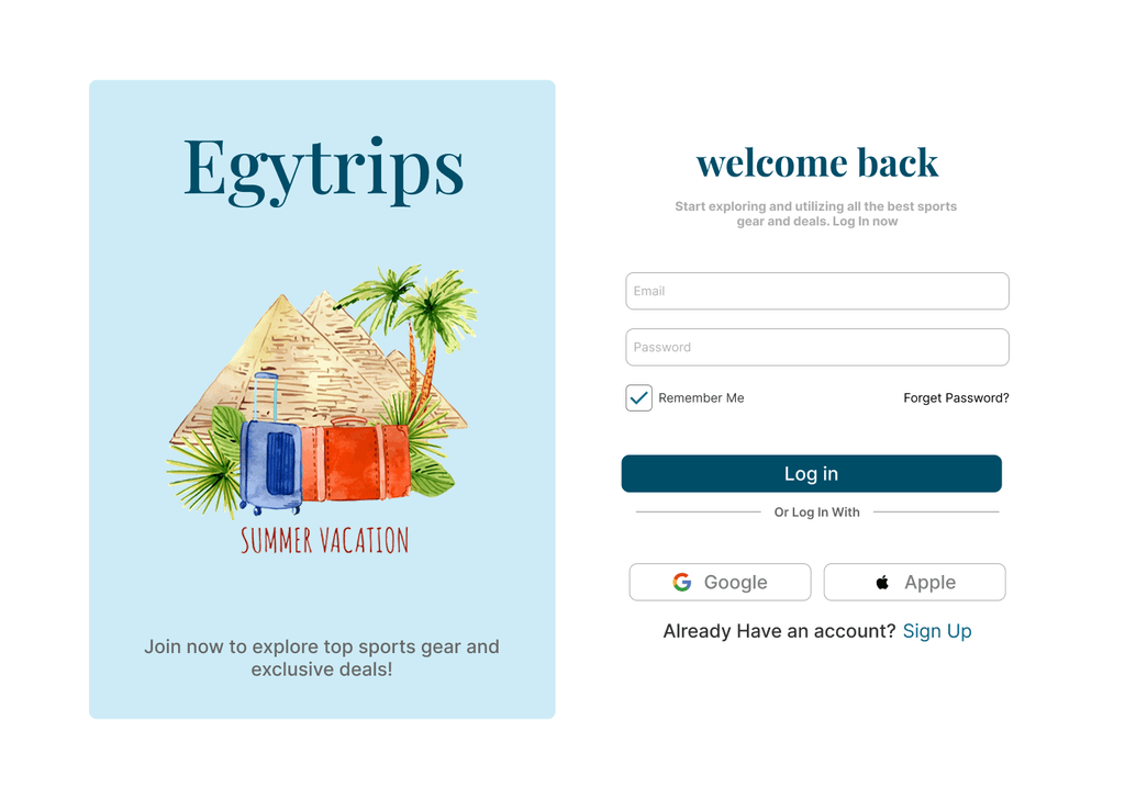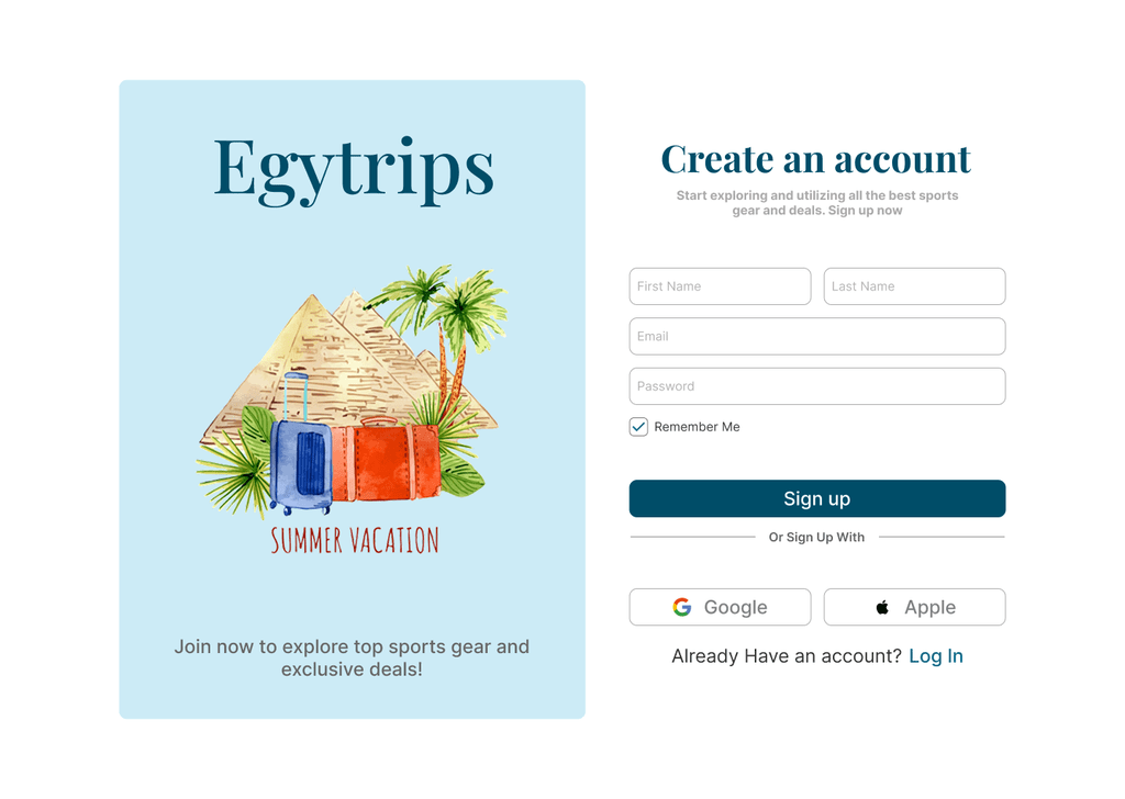 تُمكن المستخدمين من إنشاء حساب جديد أو تسجيل الدخول لمتابعة حجوزاتهم واستعراض تاريخ الرحلات.