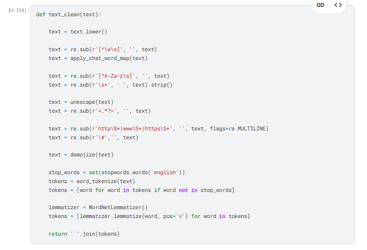 * تنظيف ومعالجة البيانات النصية (إزالة الضوضاء، الكلمات الشائعة، التقطيع، التルقيم... إلخ)