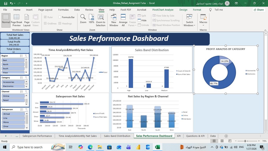 تصميم لوحات بيانات تفاعلية ومخصصة باستخدام Excel Dashboards وMicrosoft Power BI لتقديم تقارير واضحة وسهلة الفهم للمستخدمين.