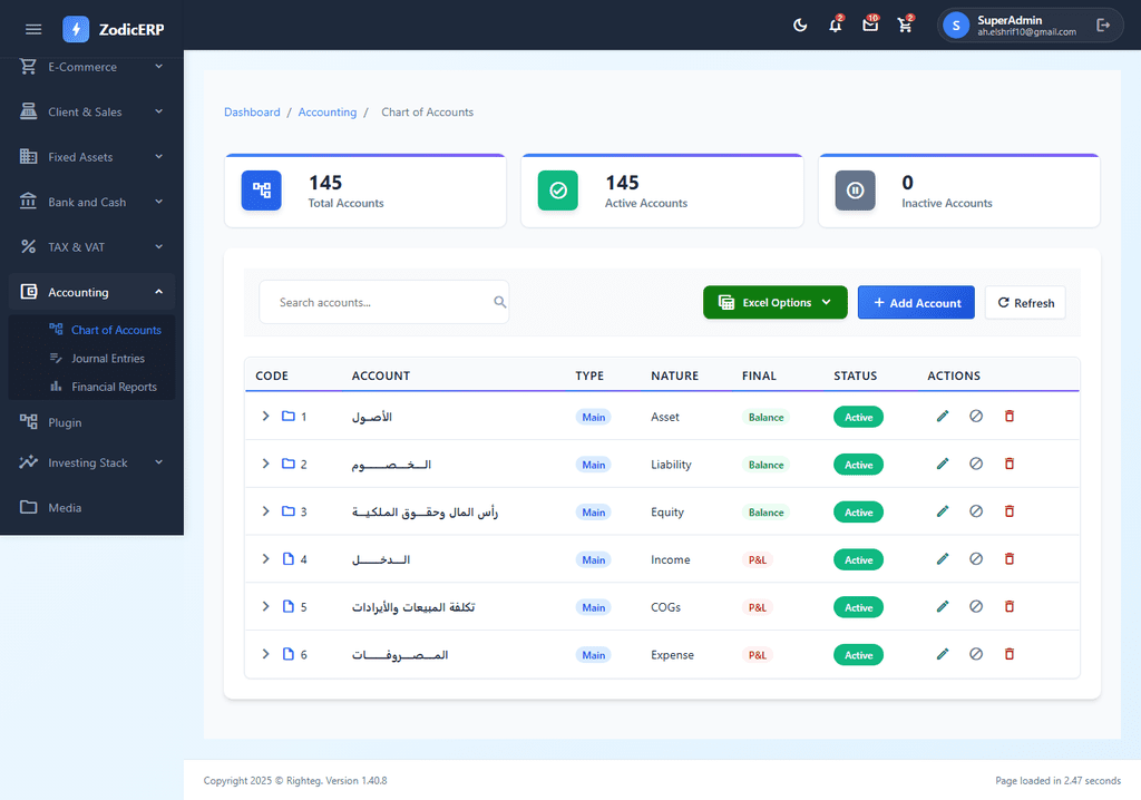 إدارة الدورة المحاسبية بالكامل من القيود اليومية حتى إعداد القوائم المالية، مع إعداد التقارير الشهرية وتحليل الأداء المالي، ومتابعة المخزون والتكاليف.