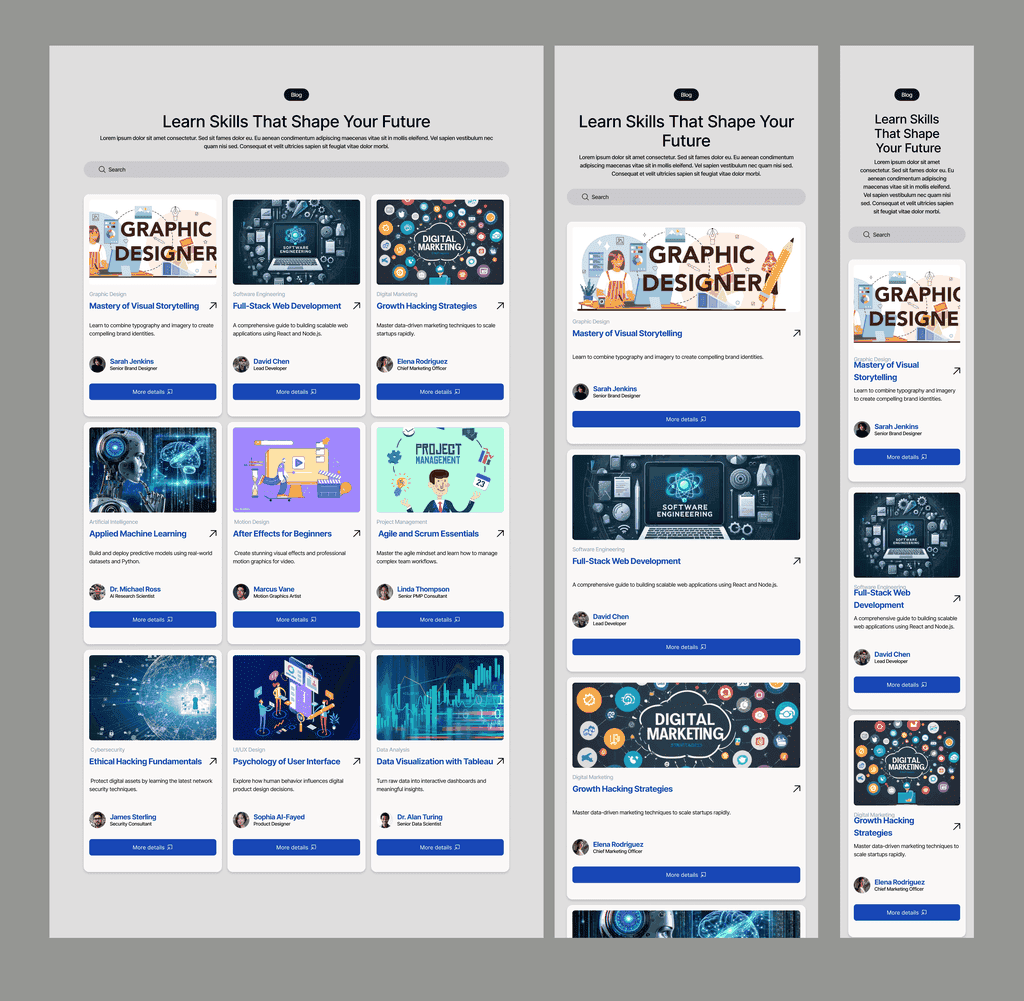 تصميم واجهات متجاوبة (Responsive Design) تعمل بكفاءة على المتصفحات وأجهزة الموبايل.