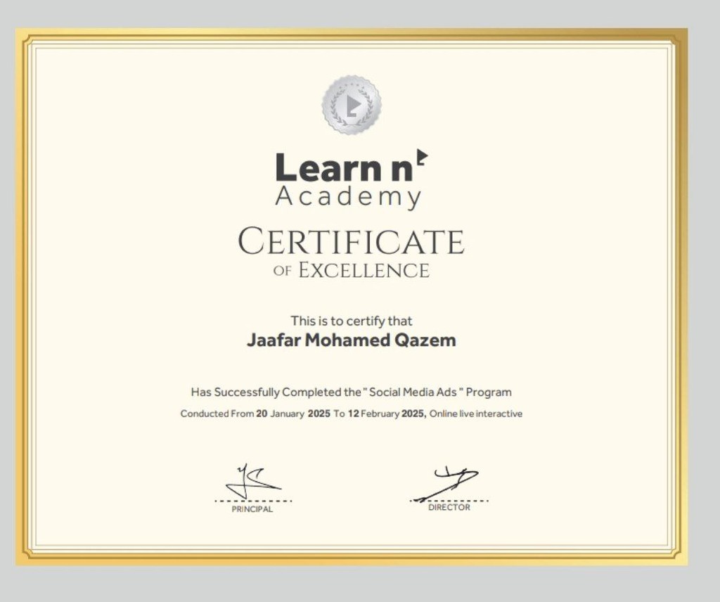 أنا جعفر محمد، مسوّق رقمي ومدير حملات إعلانية متخصص في الإعلانات الممولة، أعمل في مجال التسويق الرقمي منذ عام 2016. أمتلك خبرة 4 سنوات في قطاع المطاعم، من بينها عملي مع شركة مدار السنة التي تدير 6 علامات تجارية وأكثر من 35 فرعًا في العراق، حيث أشرفت على إدارة الحملات الرقمية وتعزيز النمو وزيادة المبيعات. كما عملت لمدة 3 سنوات في قطاع السفر والسياحة مع شركة كورو، أول ستارتب عراقي مختص بالسفر داخل العراق، وساهمت في بناء الاستراتيجية الرقمية وزيادة الحجوزات.