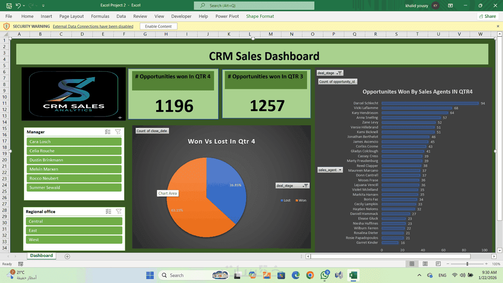 نظفت البيانات الأولية وعالجتها باستخدام Excel (باور كويري) لضمان دقة البيانات بنسبة ١٠٠٪ للتقارير النهائية.