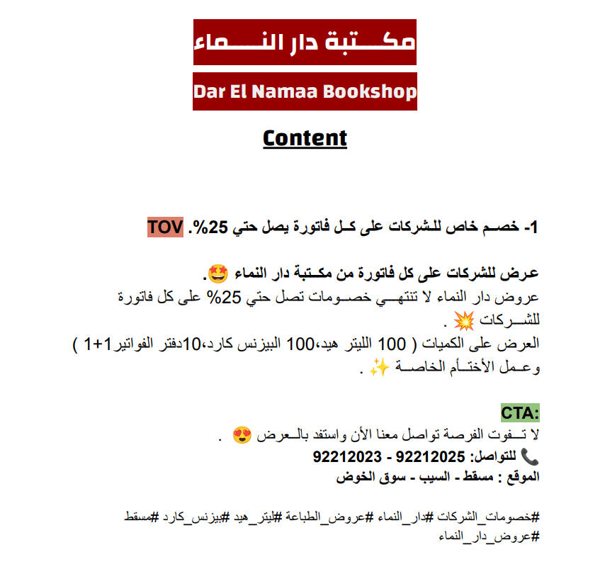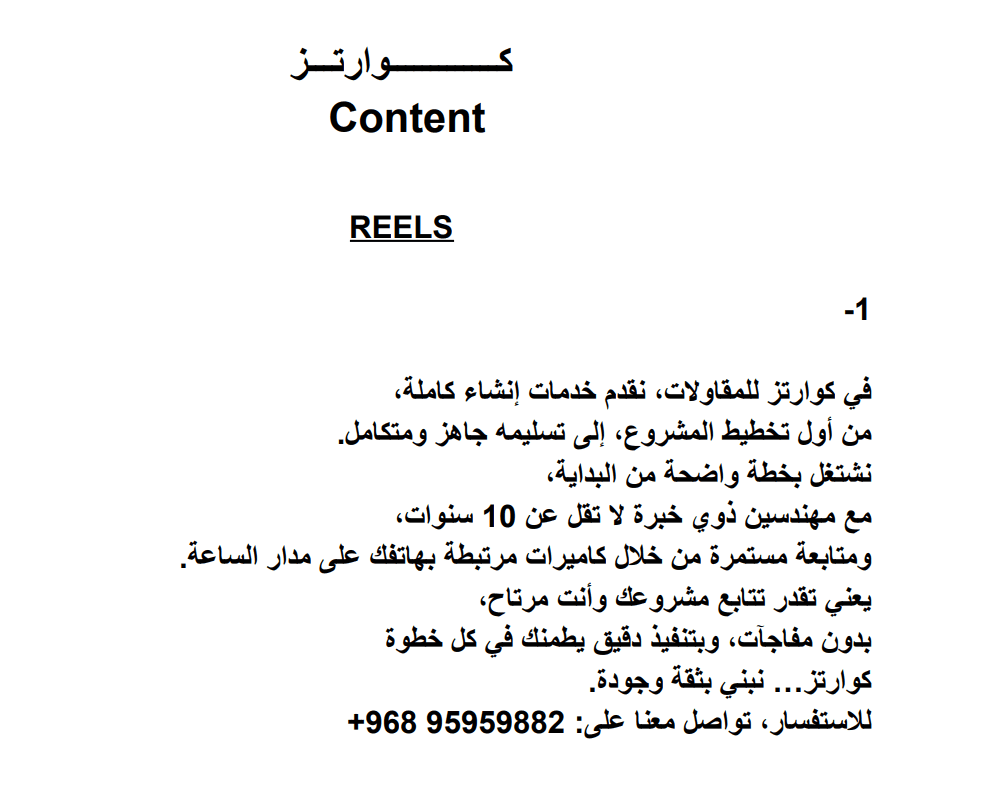 كتابة محتوى مخصص يشمل الإعلانات، سكريبتات الفيديو، ومنشورات السوشيال ميديا.