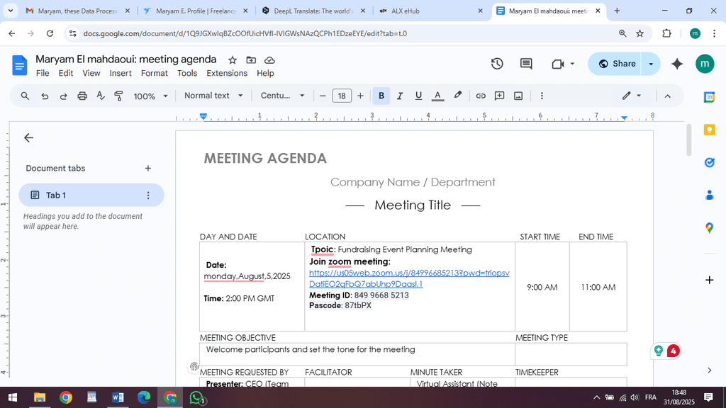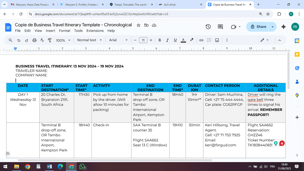 مساعدة افتراضية منظمة وذات مبادرة عالية، ملتزمة بتقديم دعم إداري وتشغيلي متميز. أمتلك مهارة عالية في إدارة الجداول، تنسيق الرحلات، التعامل مع المراسلات، وإجراء أبحاث متعمقة عبر الإنترنت لضمان سير الأعمال بسلاسة. أتميز بقدرتي على ترتيب الأولويات، والحفاظ على السرية التامة، والتأقلم مع البيئات السريعة التغير. هدفي هو مساعدة المدراء ورواد الأعمال والفرق على استثمار وقتهم بكفاءة، وتبسيط العمليات، وتحقيق أهدافهم بدقة وفعالية.نقاط القوة:مهارات عالية في إدارة الوقت وتنفيذ المهام المتعددةقدرات قوية في التواصل وحل المشكلاتإتقان أدوات العمل المكتبي ومنصات التعاون عبر الإنترنتدقة عالية واهتمام بالتفاصيلالقدرة على العمل المستقل مع إشراف محدودمرونة في التكيف مع مجالات ومهام متنوعة