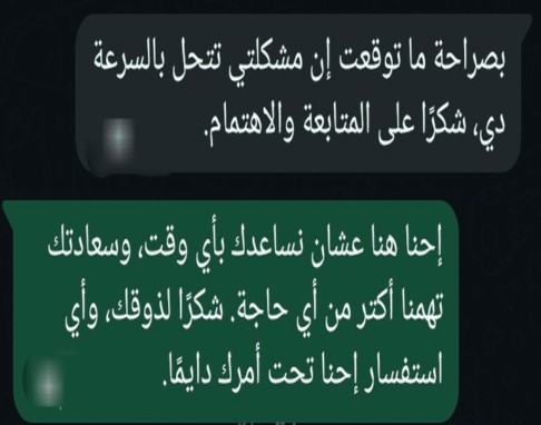 تواصلت مع العملاء عبر واتساب وكرزون، وقدمت لهم الدعم اللازم وحل المشكلات بشكل سريع وفعّال.