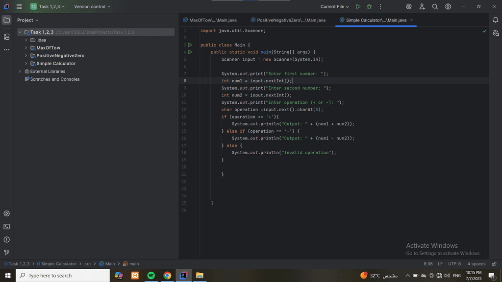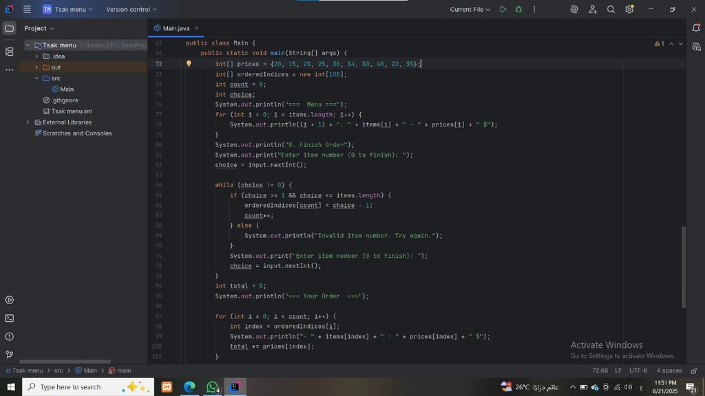 تطوير برامج Console تشمل: آلة حاسبة، نظام مكتبة إلكترونية، ونظام طلبات مطعم.