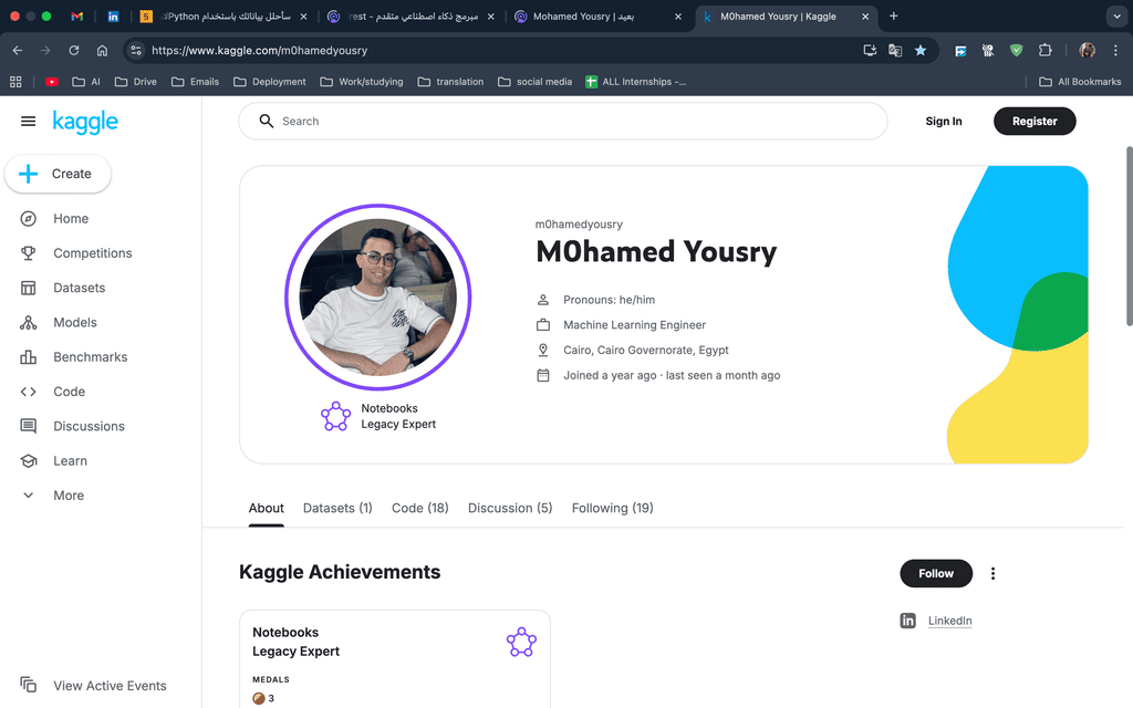 أنا محمد يسري، مهندس ذكاء اصطناعي وخريج علوم حاسب، متخصص في تحليل البيانات وتطوير نماذج تعلم الآلة باستخدام Python.