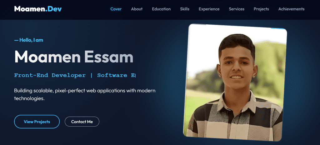 I’m Moamen Essam Roshdy, a Frontend Developer focused on building clean, responsive, and user-friendly web interfaces. I work mainly with HTML, CSS, JavaScript, and React to create modern websites and web applications. I enjoy turning ideas and designs into functional, well-structured code that delivers a smooth user experience. I’m especially good at building responsive layouts, writing clean and maintainable code, and paying close attention to UI details that enhance usability and performance.