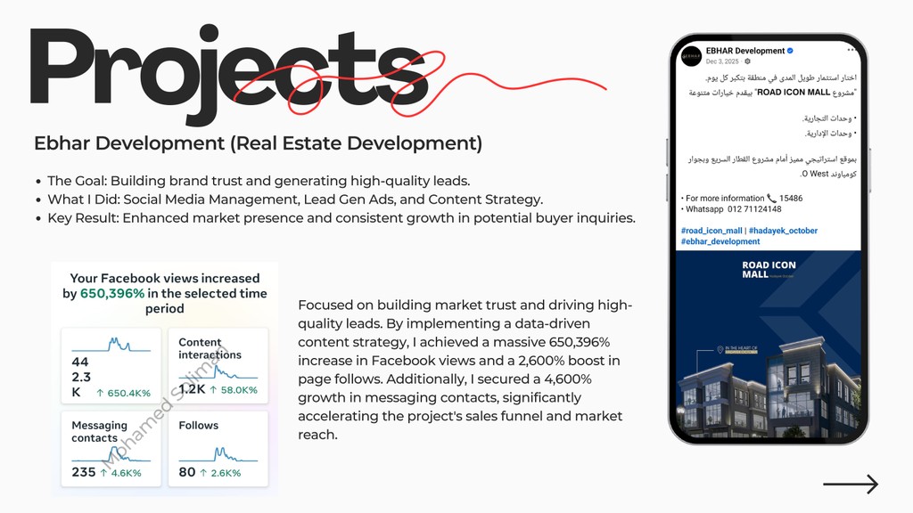 • تحقيق نمو هائل في المشاهدات على فيسبوك بنسبة تجاوزت 600,000% في قطاع العقارات.