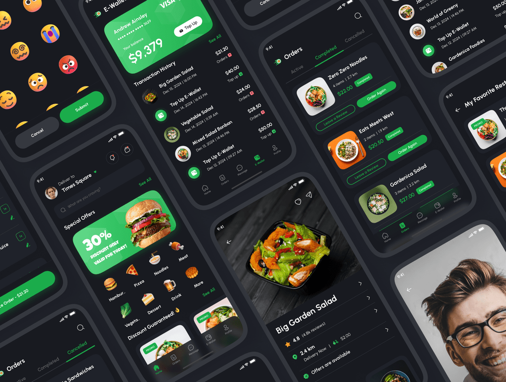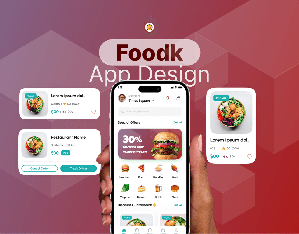 صممت UI Kit لتطبيقات توصيل الطعام، يحتوي على أكثر من 180 شاشة و255 مكوّن، يدعم Android وiOS، ومتاح بالـ Light & Dark Themes.