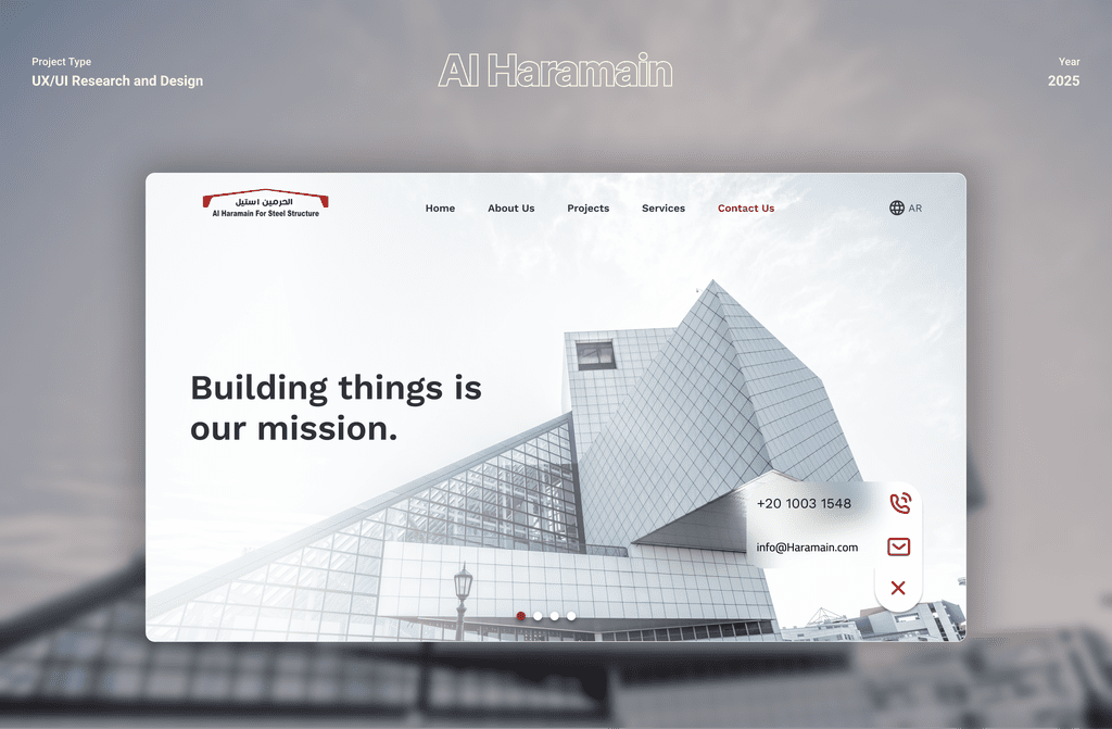 صممت موقع ثنائي اللغة (عربي/إنجليزي) يعرض خدمات ومشاريع الشركة بشكل احترافي.