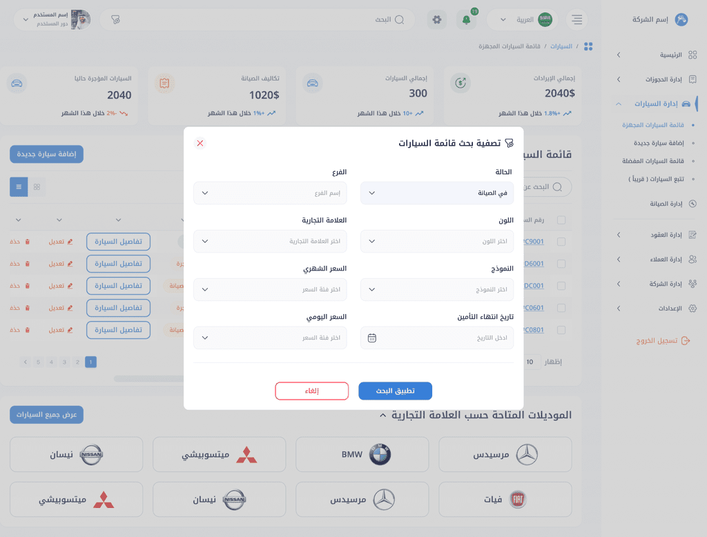 OSTOOL Car Rental Management Platform (SaaS): نظام متكامل لتأجير السيارات مع لوحة تحكم وإدارة مستخدمين.