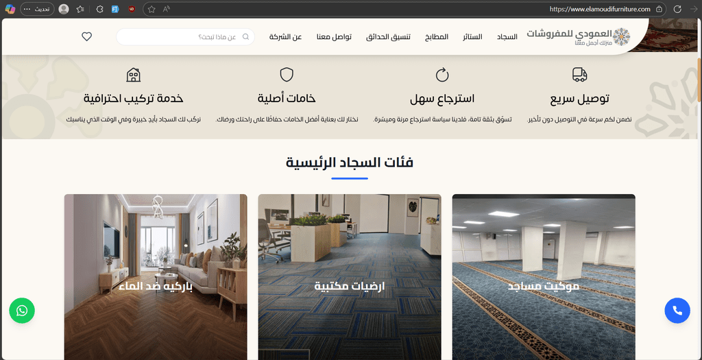 Al-Amoudi Furniture E-Commerce: متجر إلكتروني متكامل للأثاث مع دعم RTL وتحسين SEO.