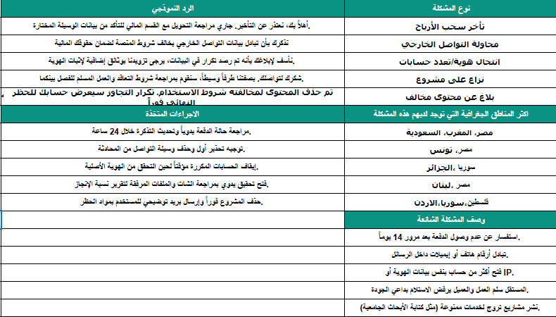 خبرة في التعامل المباشر مع مستخدمي منصات العمل الحر، وتوجيههم للحلول التقنية والتنظيمية المناسبة.