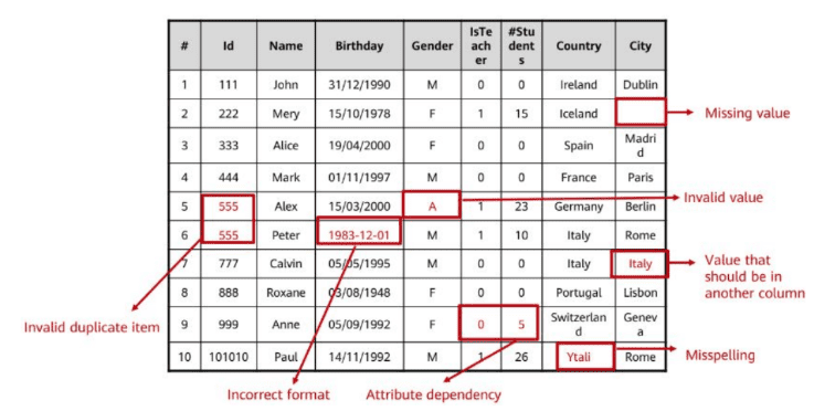 معالجة البيانات (القيم المفقودة، الترميز، التقييس) لتحسين جودة البيانات