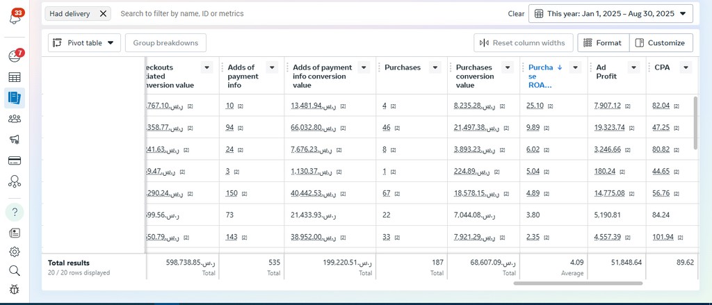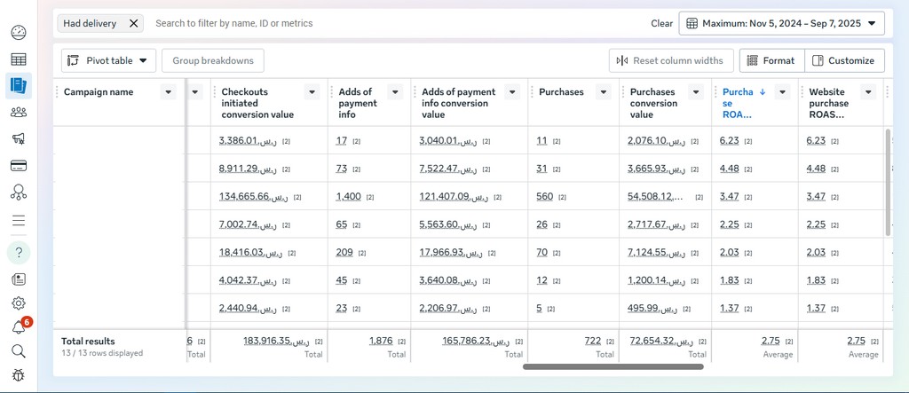 - تحقيق ROAS يفوق 5x من خلال حملات تسويقية مدروسة في السوق السعودي.