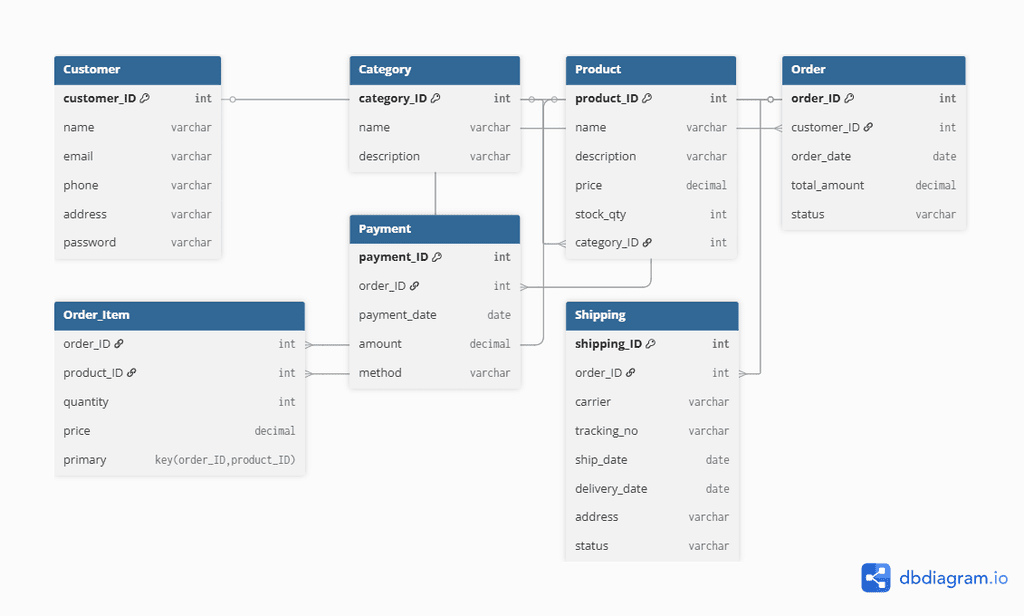 تصميم ERD بسيط ومنظم يوضح الكيانات والعلاقات