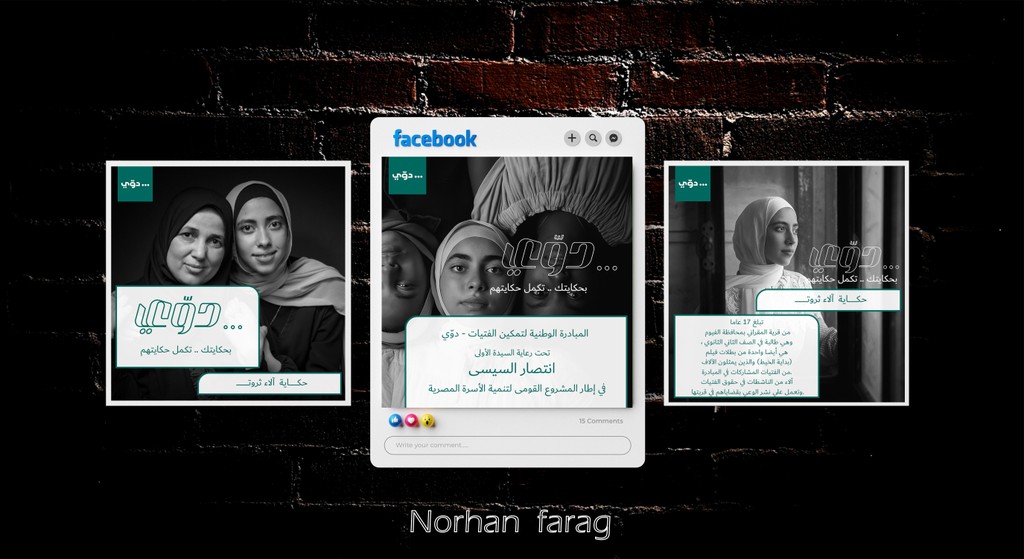 أنا نورهان فرج مصممة جرافيك شغوفة بالفن والإبداع، أهتم بأدق التفاصيل وأؤمن إن قوة أي مشروع بتبدأ من قوة هويته البصرية. بخبرتي في تصميم الهويات والبوسترات وبكل ما يتعلق بالتصميم الجرافيكي، أقدر أساعدك تقدم نفسك أو مشروعك بأفضل صورة.