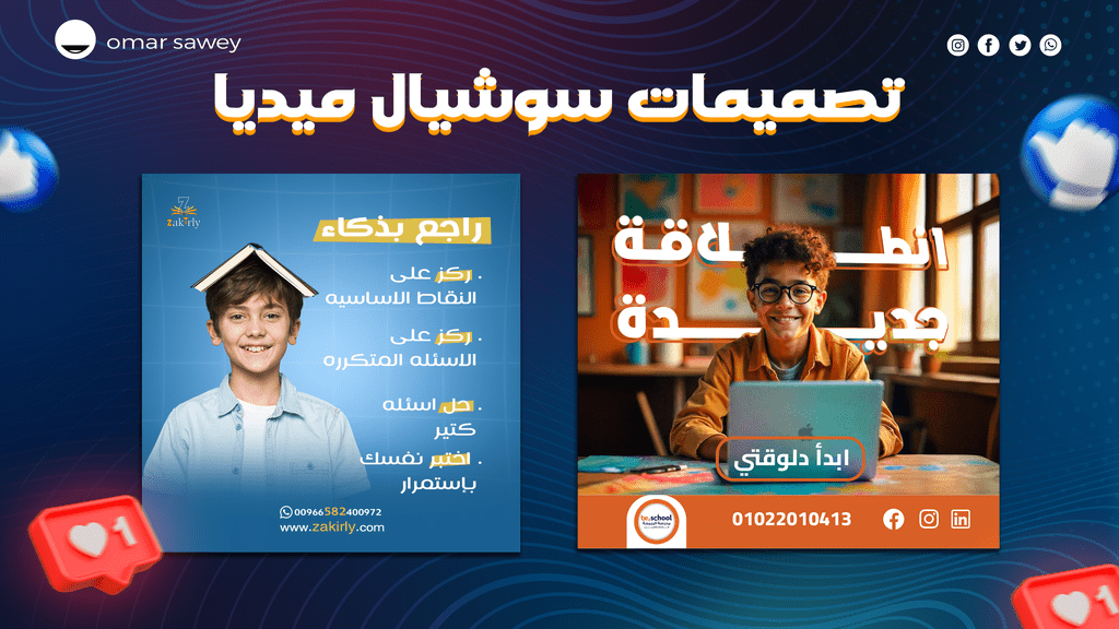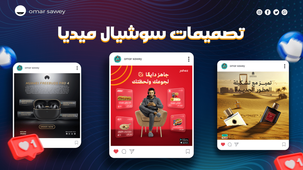 عمر الصاوي مصمم جرافيك بخبرة 3 + سنوات متخصص في الهوية البصرية والسوشيال ميديا عملت مع أكثر من 50 عميل على مختلف المنصات ووكالتين تسويق