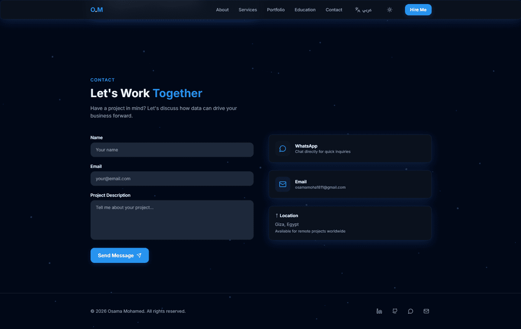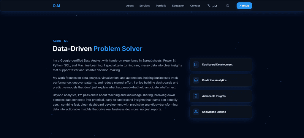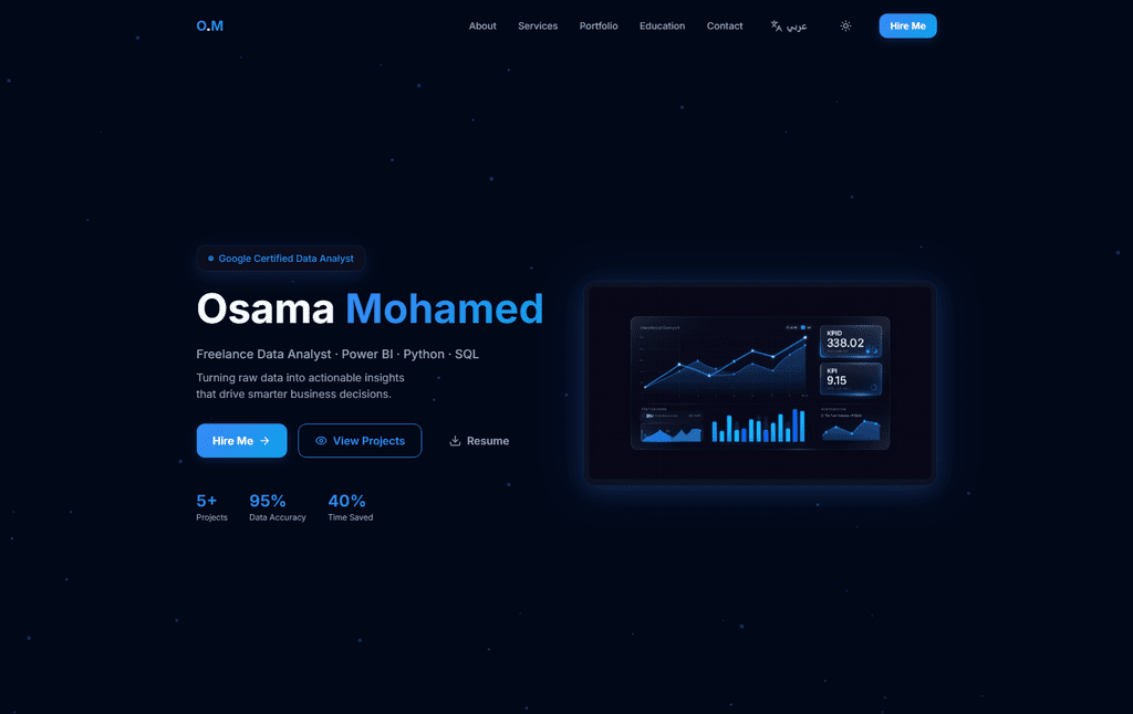 مطور برمجيات ومحلل بيانات شغوف بتحويل الأرقام إلى رؤى استراتيجية، أجمع بين مهارة الأكواد ودقة التحليل وبين فن إدارة منصات التواصل الاجتماعي وتطوير حضورها الرقمي، أسعى دائماً لدمج الحلول التقنية المبتكرة مع استراتيجيات المحتوى لتحقيق أفضل النتائج والنمو الرقمي المتكامل