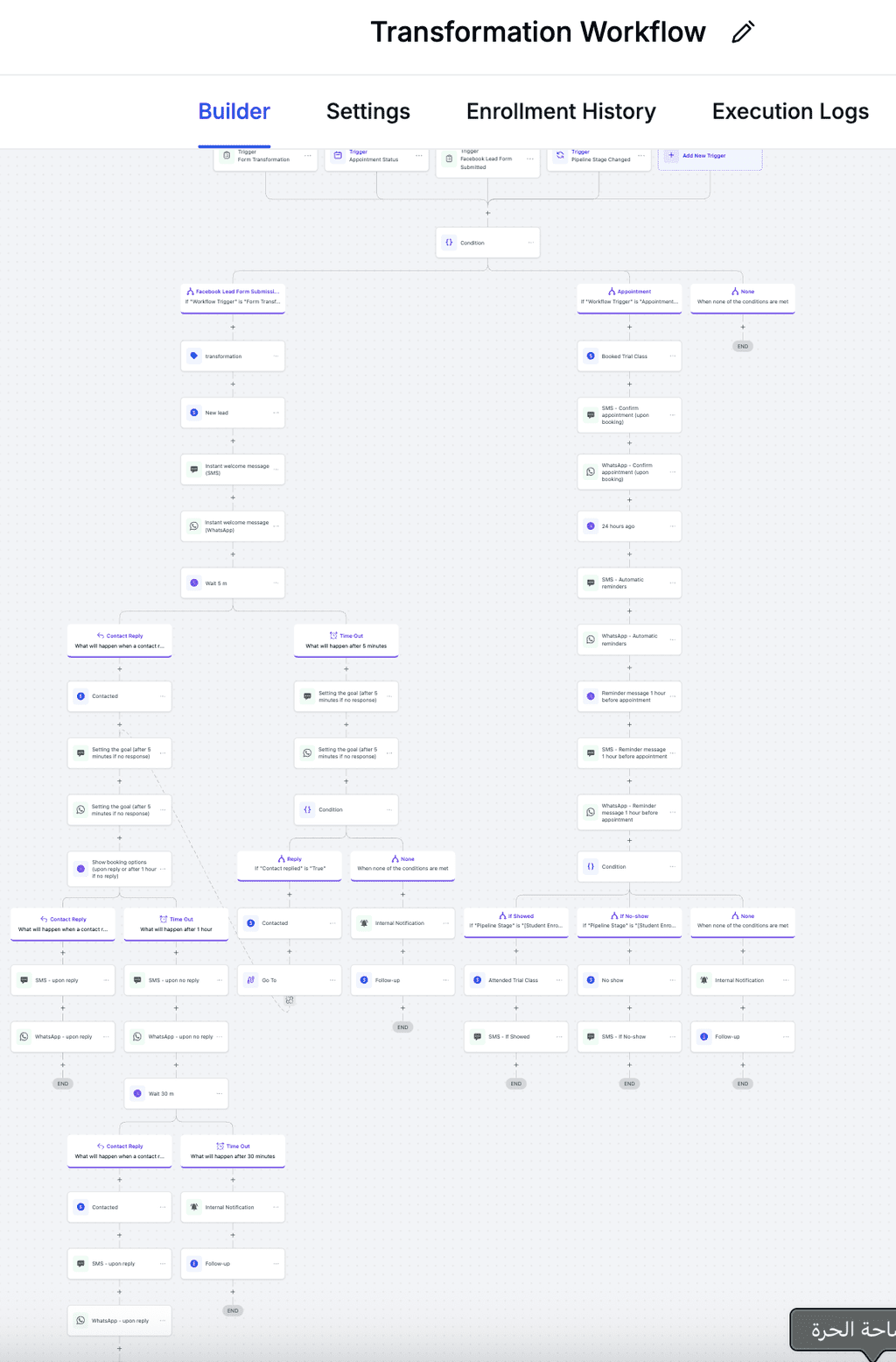 بناء أتمتة متكاملة لتسريع متابعة العملاء، جدولة المواعيد، وإرسال الرسائل التلقائية لرفع الكفاءة وزيادة المبيعات.