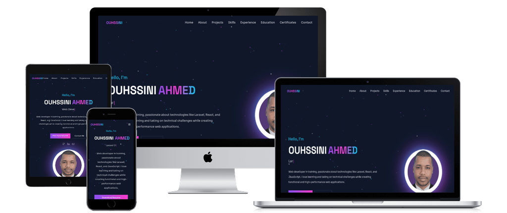 أنا وحسيني أحمد، مطور ويب متكامل (Full Stack Developer) متخصص في Laravel وPHP، مع خبرة قوية في بناء تطبيقات ويب حديثة وقابلة للتوسع. أعمل أيضًا على واجهات المستخدم باستخدام React.js، وأعتمد على قواعد بيانات مثل MySQL، إلى جانب JavaScript وتقنيات الويب الحديثة.
