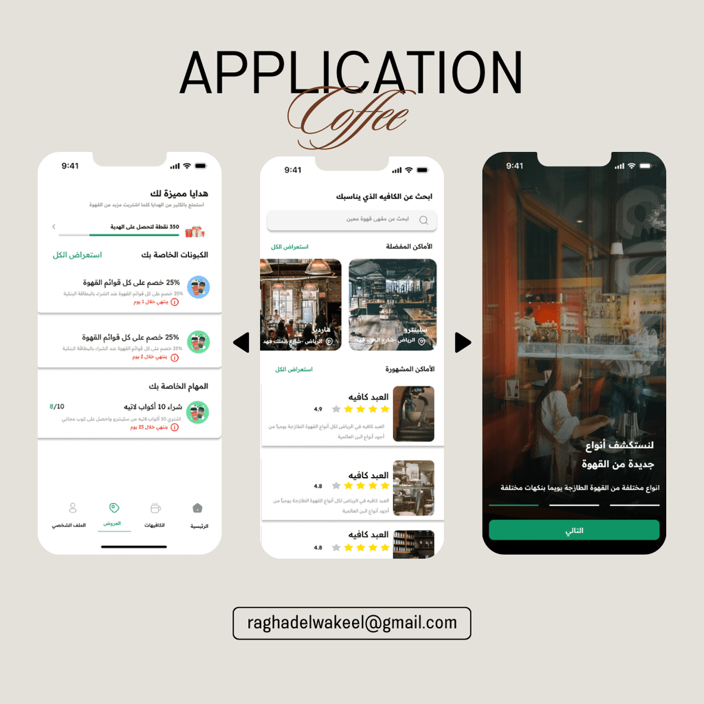 تطبيق "Coffee" هو تطبيق عصري صُمّم لعشّاق القهوة، يتيح للمستخدمين استكشاف المقاهي المفضلة لديهم، اكتشاف أنواع جديدة من القهوة، والحصول على عروض وهدايا خاصة من أماكن مختارة.