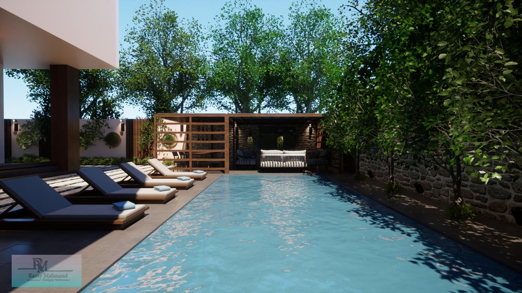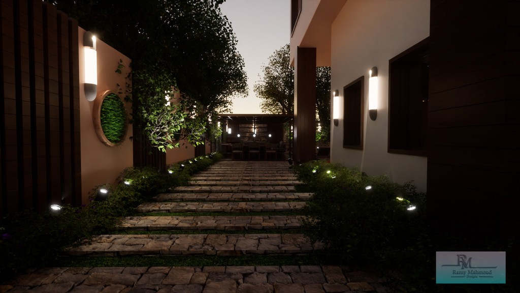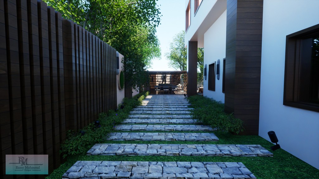 •تصميم لانسكيب خارجي : تصميم اللانسكيب و الoutdoor spaces (مع مراعاة الظروف البيئية للمنطقة و البحث عن ما يلائم التشجير و العناصر)