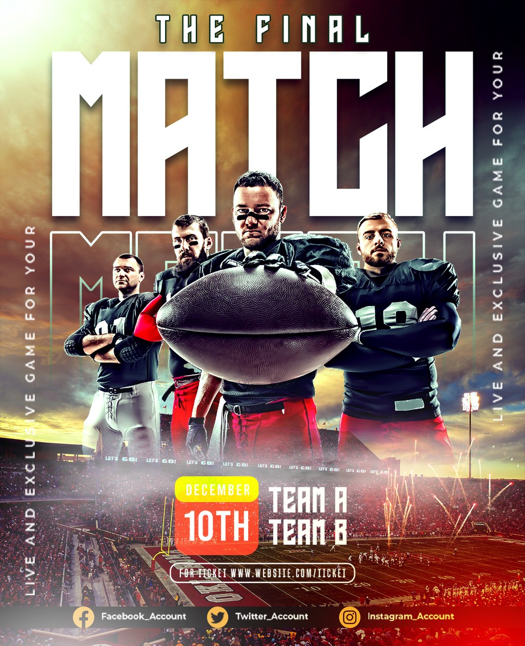 تصميم منشورات المباريات والمحتوى الرياضي لوسائل التواصل الاجتماعي