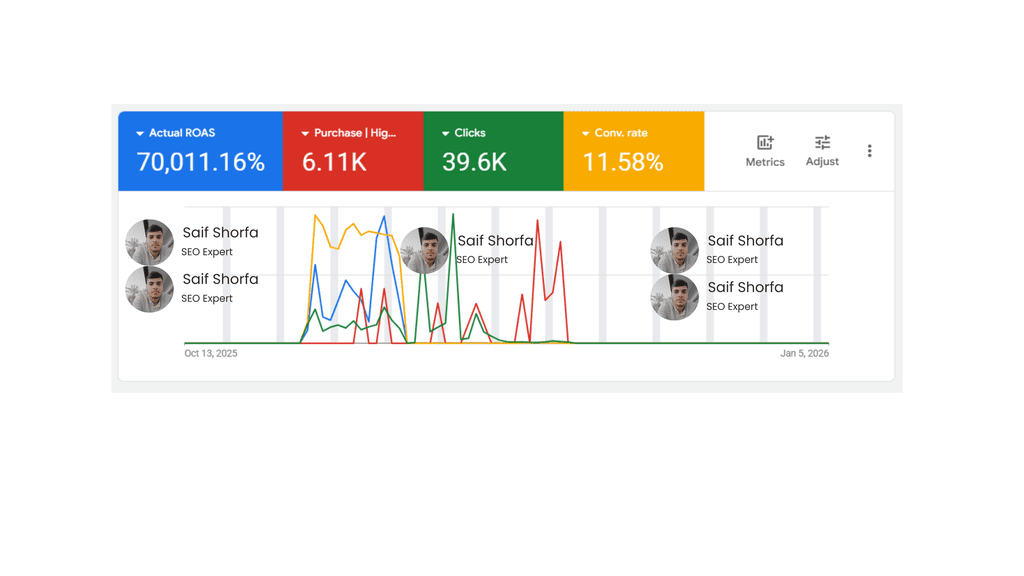 أنا سيف الشرفا، أخصائي تسويق رقمي وخبير SEO بخبرة +3 سنوات في تحسين الظهور العضوي وإدارة الحملات الإعلانية على Meta وGoogle. أقدّم تدقيقات SEO تقنية، تخطيط محتوى، وتحسين صفحات الهبوط لرفع التحويلات وROAS.