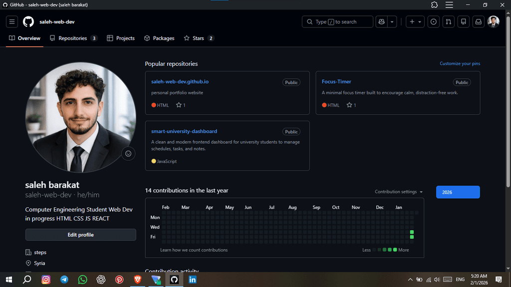 I have built several practical projects such as landing pages, personal websites, and interactive UI components. All projects are available on my GitHub.