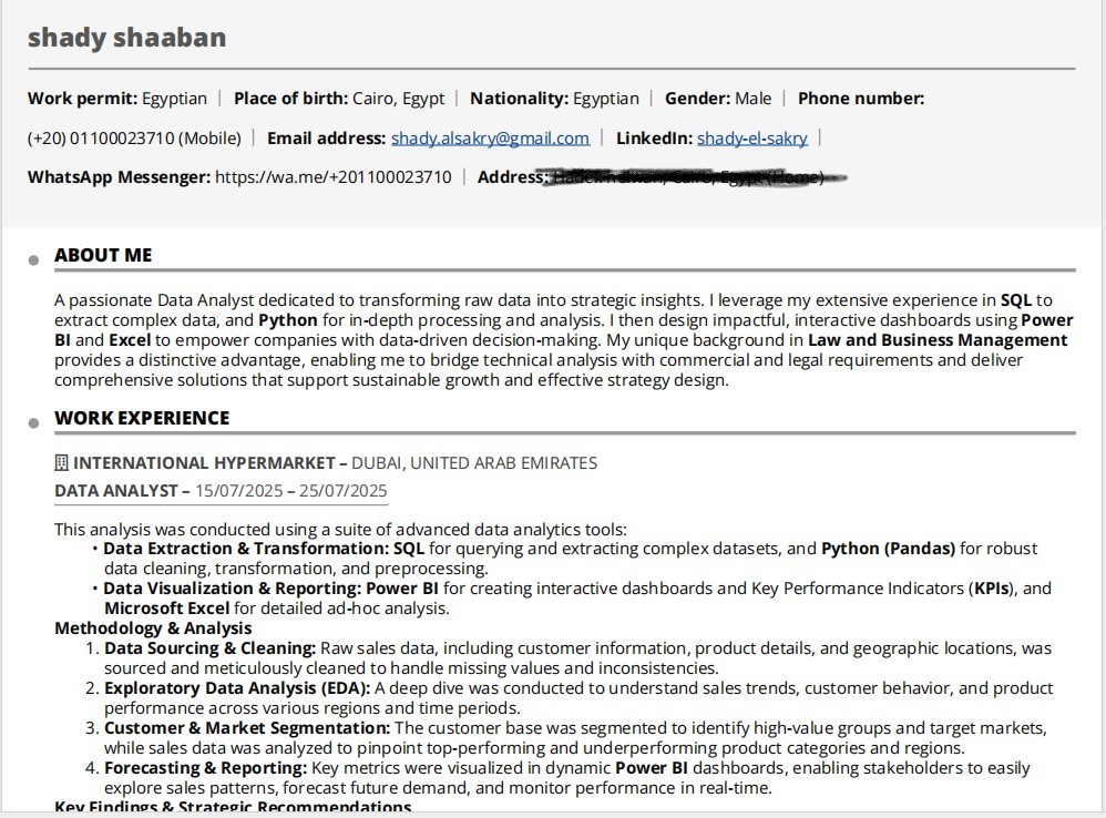 أنا شادي، محلل بيانات بخلفية قوية في إدارة المبيعات، أمتلك خبرة في دمج الرؤى الاستراتيجية مع التحليلات المتقدمة لصنع قرارات دقيقة قائمة على البيانات. أبرع في استخدام أدوات تحليلية متنوعة مثل Excel، Power Query، Power BI، SQL، Python (Pandas, NumPy) لتنظيف البيانات، معالجتها، واستخراج أنماط ورؤى قيّمة تدعم نمو الأعمال.