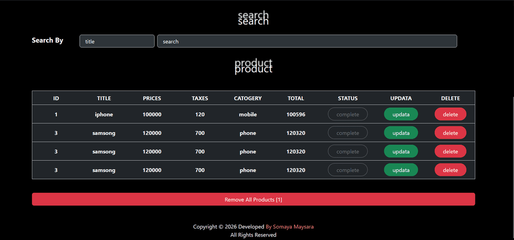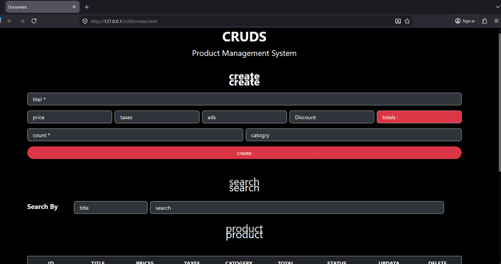 بناء وتطوير تطبيق ويب تفاعلي يتيح للمستخدمين (إنشاء، قراءة، تحديث، وحذف) البيانات بشكل كامل. اعتمدت في هذا المشروع على JavaScript للتعامل مع العمليات المنطقية، مع ضمان واجهة مستخدم سلسة واستجابة سريعة للأوامر، مما يسهل إدارة وتنظيم المعلومات بكفاءة عالية.
