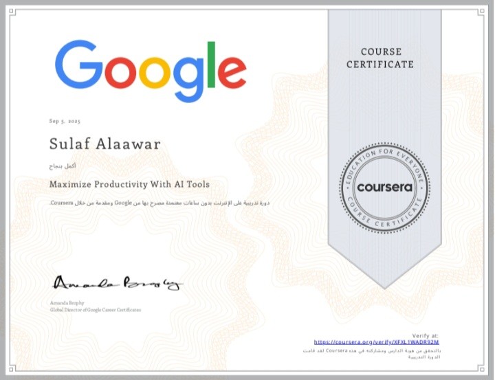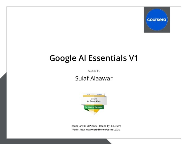 امتلك شهادات من Google في استخدام أدوات الذكاء الاصطناعي بفعالية .