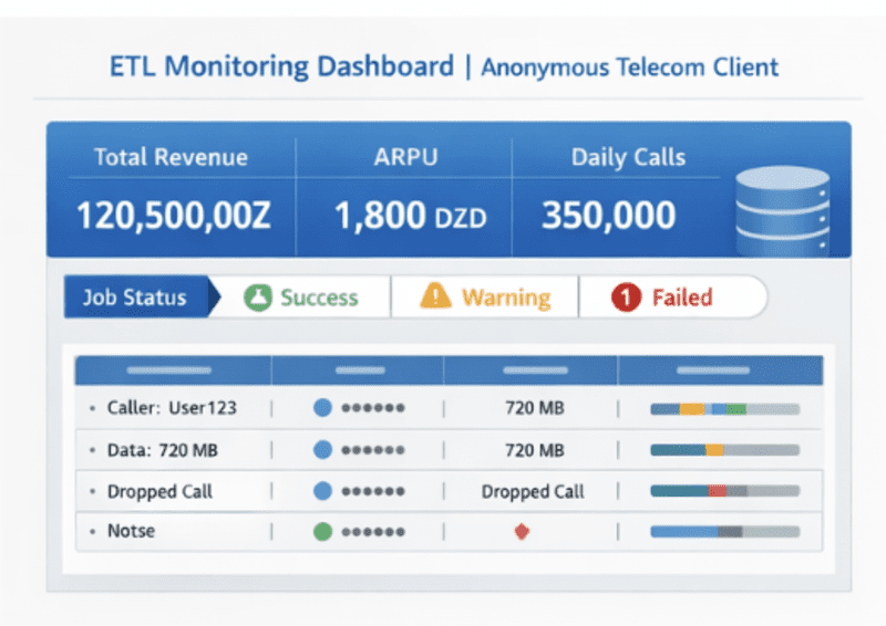 • تحجيم ETL: تصميم خطوط ETL تعالج ملايين السجلات يوميًا مع تقليل وقت التنفيذ بنسبة 40%.