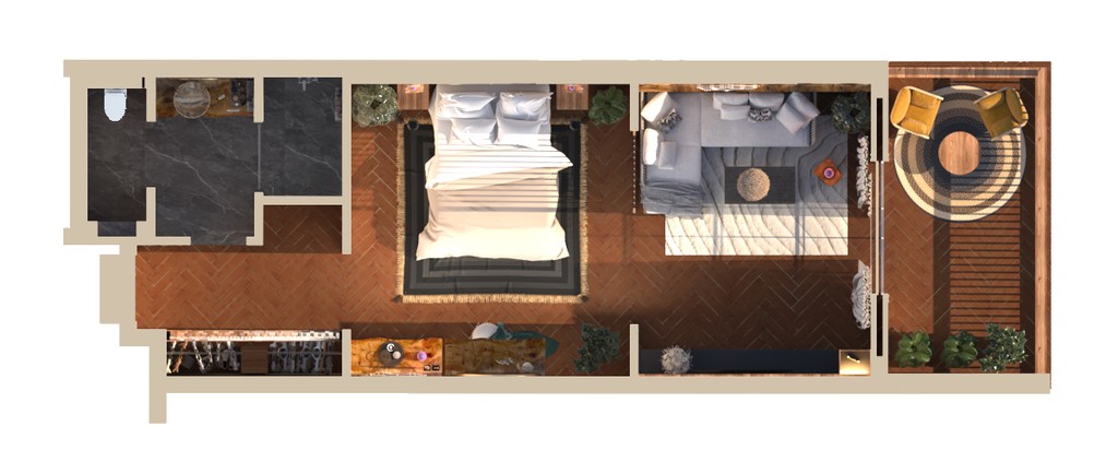 Photoshop : اظهار معمارى للمخططات ثنائية الأبعاد وتعديل وتنسيق المشاهد النهائية.