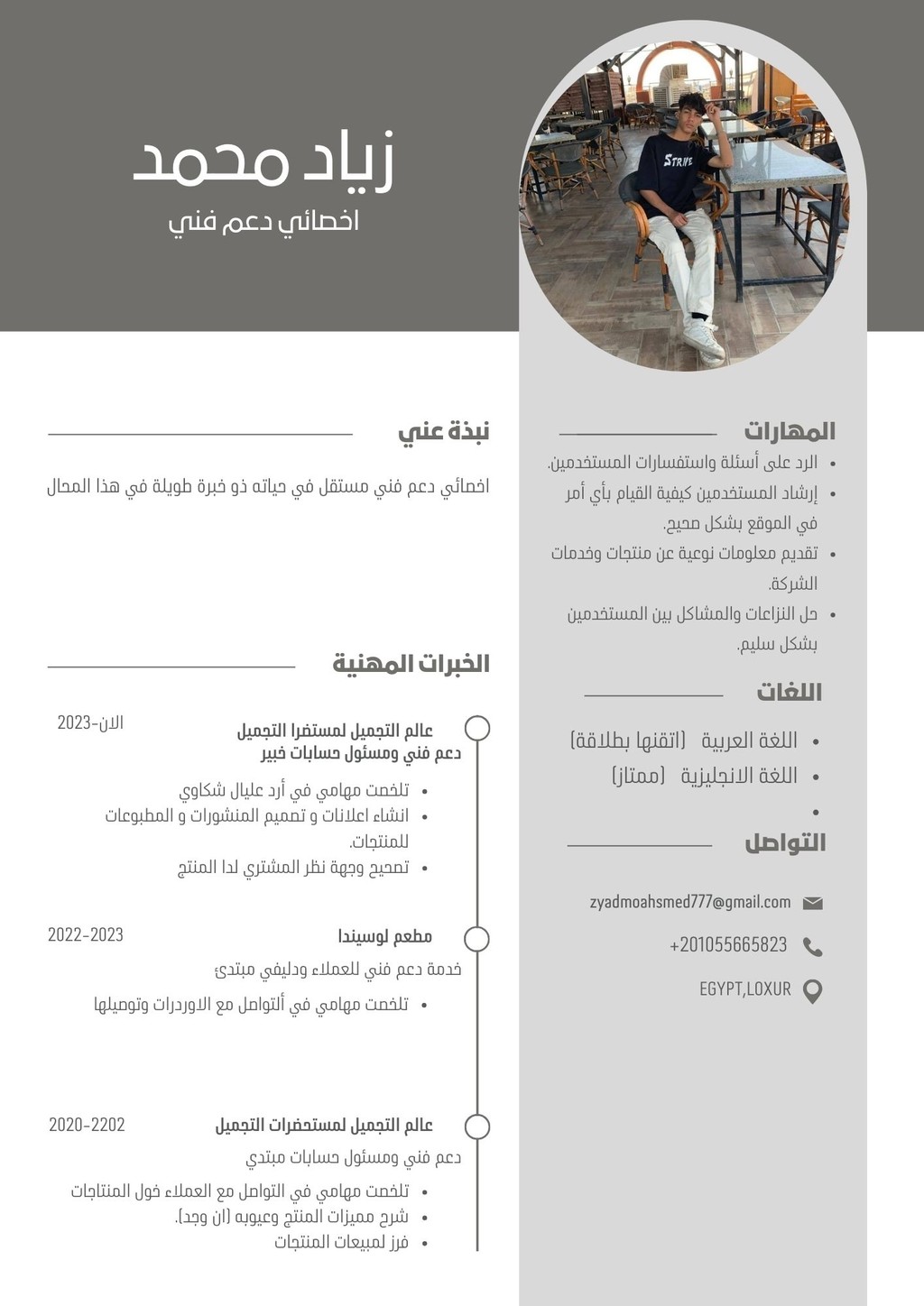 خصائي دعم فني يتمتع بخبرة واسعة في مجال خدمة العملاء وإدارة الحسابات. أتميز بمهارات قوية في التواصل وحل المشكلات، مع خبرة في تصميم الإعلانات والمنشورات الدعائية، والتعامل الفعّال مع شكاوى العملاء واستفساراتهم. أسعى دائمًا لتعزيز رضا العملاء وتحقيق أفضل النتائج للشركة
