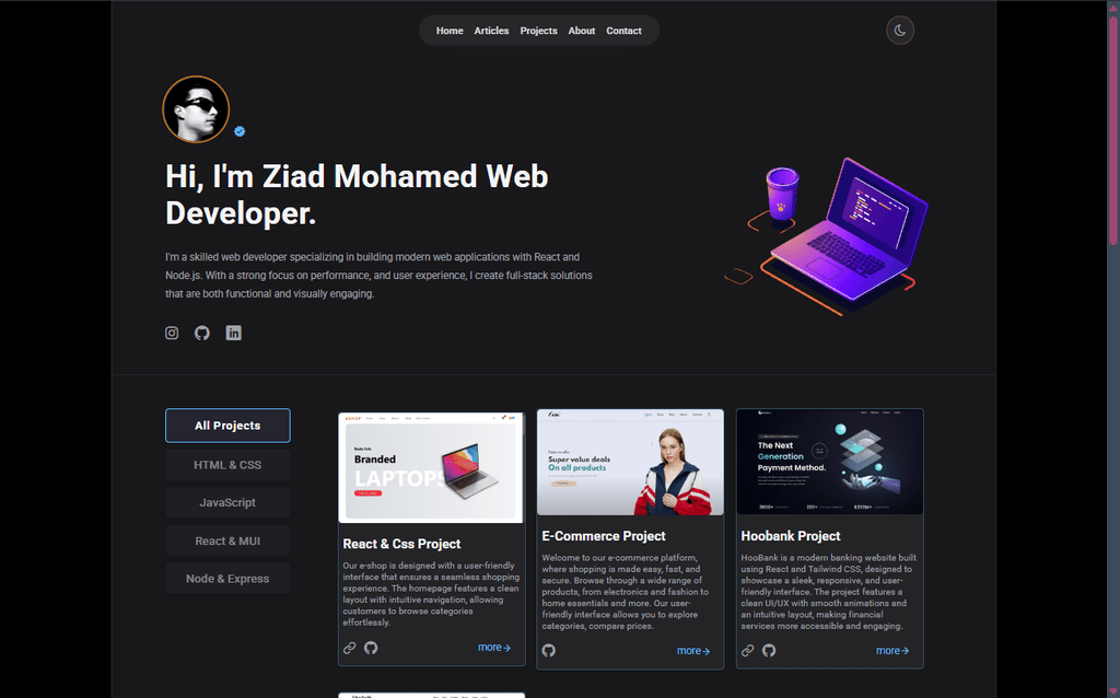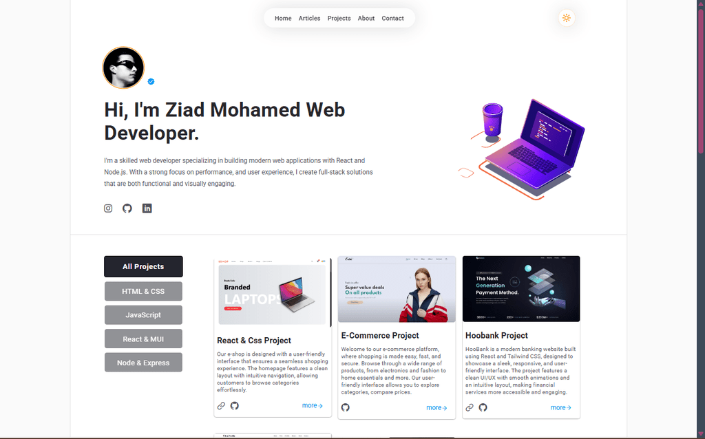 أنا مطوّر ويب متخصّص في بناء تطبيقات حديثة باستخدام React, Node.js, و MongoDB.